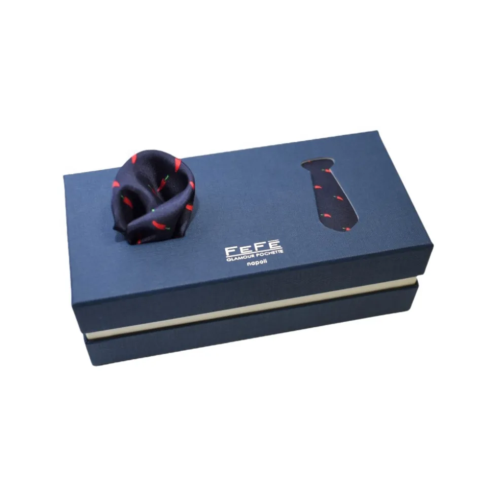 The Gift Box is the perfect gift idea: precious 100% silk pocket square entirely Made in Italy with hand-finished hem and contrasting edge coordinated with the 100% silk tie, worked and lined entirely by hand.