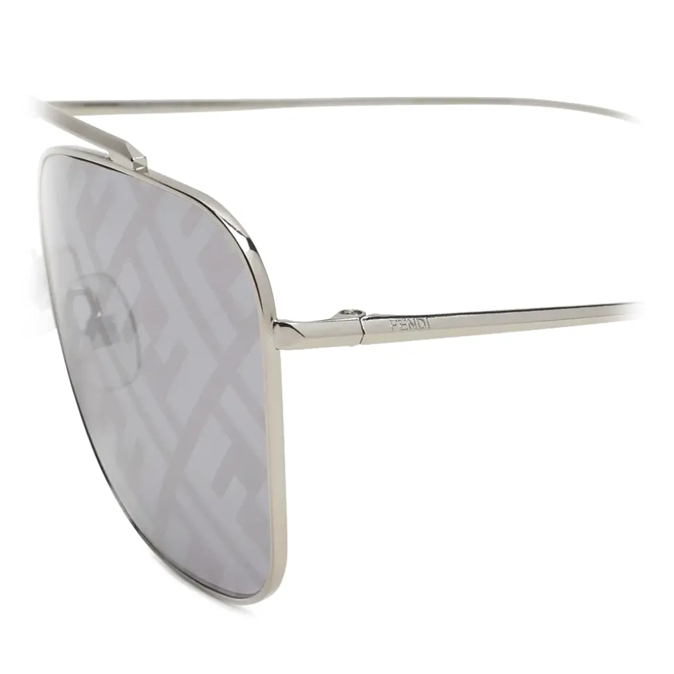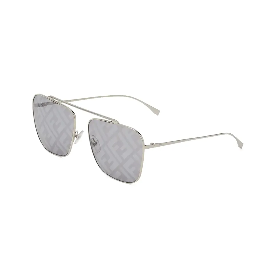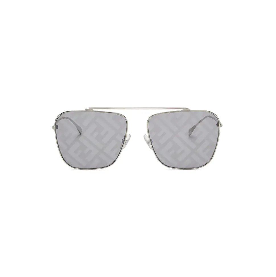 Square, caravan-shaped frame in gold-colored metal with gray lenses and all-over silver mirror effect FF logo. Adjustable nose pads. Made in Italy.