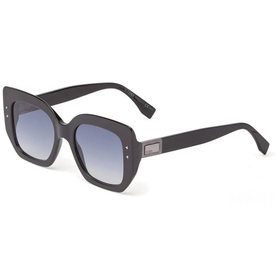 Sunglasses with a square shape in black acetate. The sophisticated design is highlighted by the geometric cuts of the frame. Ruthenium zipper with engraved Fendi logo, inspired by the iconic Fendi bag: the Peekaboo. Internal customization of the auction with hot stamped “Peekaboo”. Blue lenses.