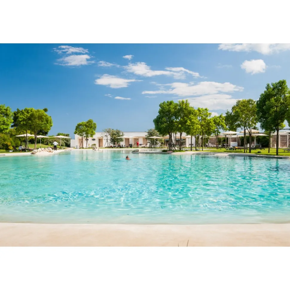 Furnirussi Tenuta offers to its guests a high quality restaurant service, through the preparation of fresh products, 0 km, organic and seasonal fruits cultivated within the Furnirussi estate and important fine dishes prepared by the master chef. Moreover the resort in puglia has an exclusive SPA with massage rooms, Kneipp bath, Jacuzzi and Hammam build within the calcareous stone. Outside, the swimming pool with biodesign technology, which seems a lake, is surrounded by a tiny camphor wood and is perfectly integrated with the surrounding landscape.