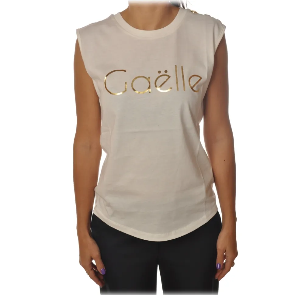Gaëlle Paris – Sleeveless Crew-Neck Sweatshirt – White – T-Shirt – Made in Italy – Luxury Exclusive Collection