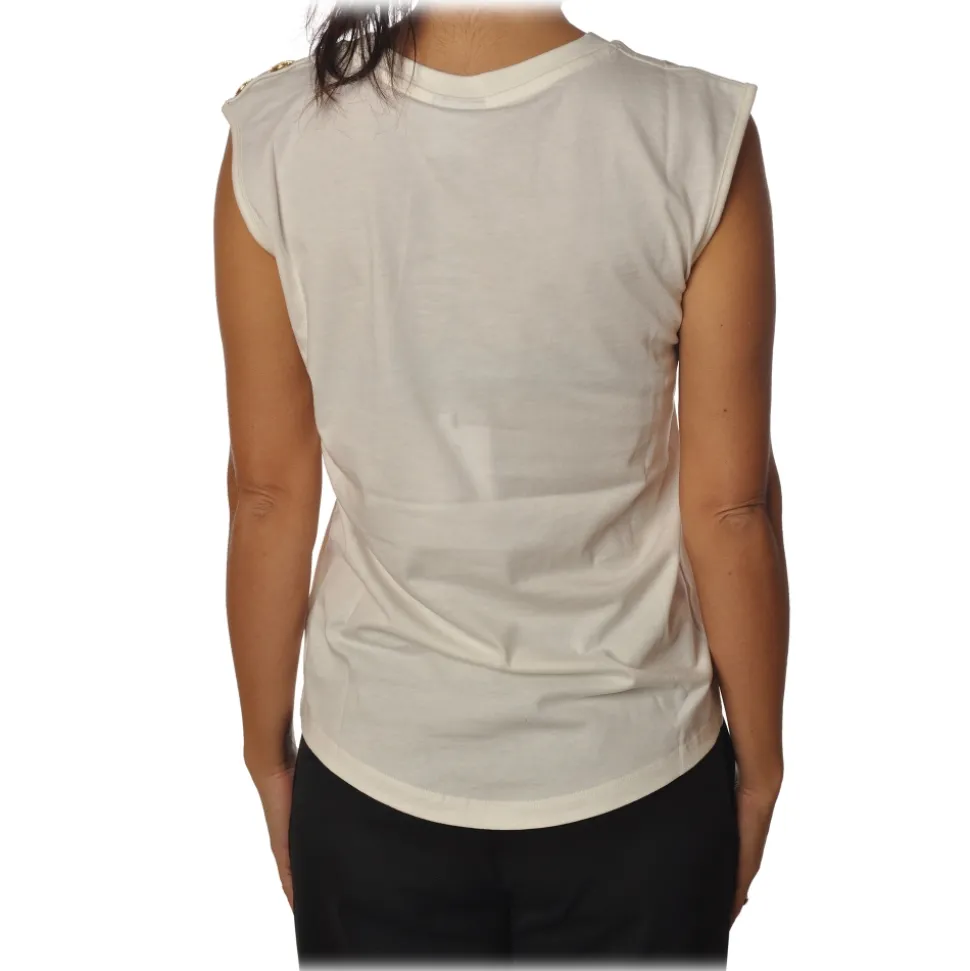 Gaëlle Paris T-Shirt, sleeveless crew neck model, with logo print on the front, with button detail on one shoulder.