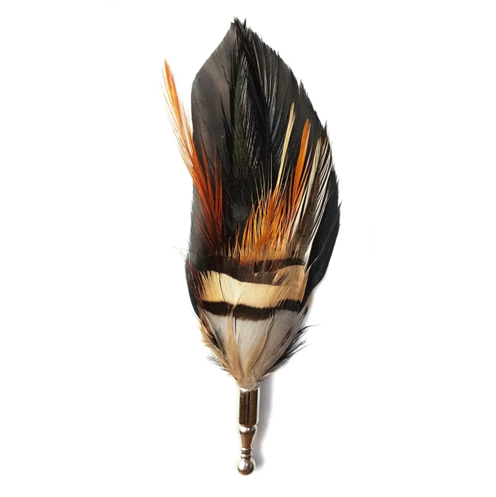 Natural Partridge Hen Feathers, Natural Chinchilla Feathers, Black Goose and Black Rooster Neck Feathers.