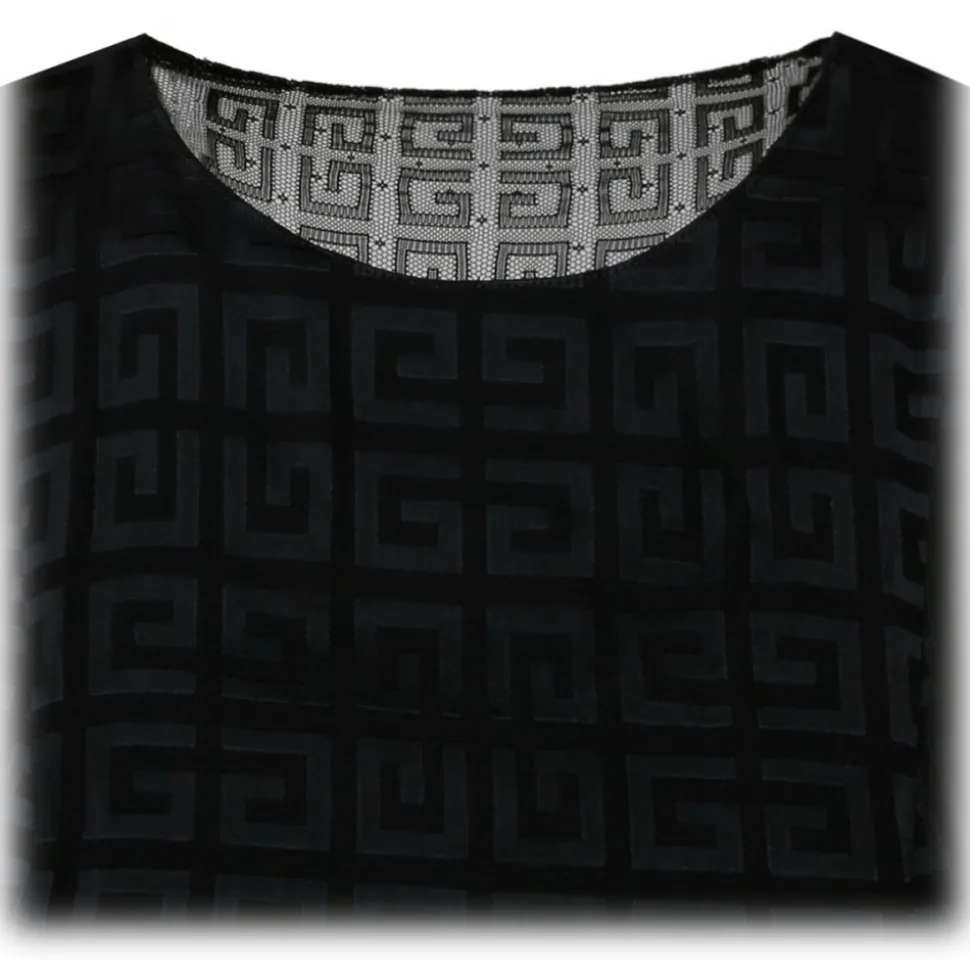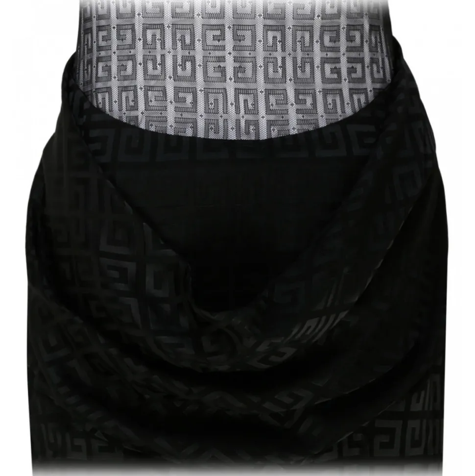 Givenchy – Black 4G Jacquard with Tulle and Drape Dress – Givenchy Exclusive Luxury Collection