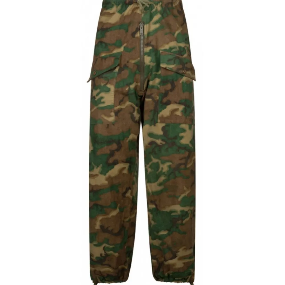 Givenchy Camouflage Cargo Trosuers. Khaki cotton cargo trousers, camouflage pattern, front zip fastening. Elasticated waistband, straight leg, two front cargo pockets, drawstring cuffs.