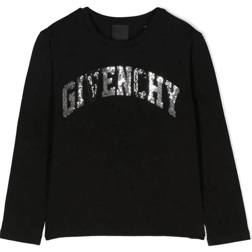 Givenchy Kids Long Sleeve T-Shirt Black. Silver logo on the chest.