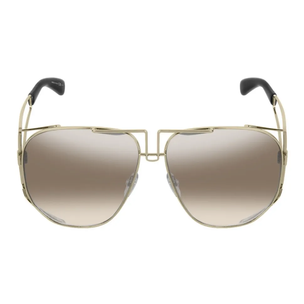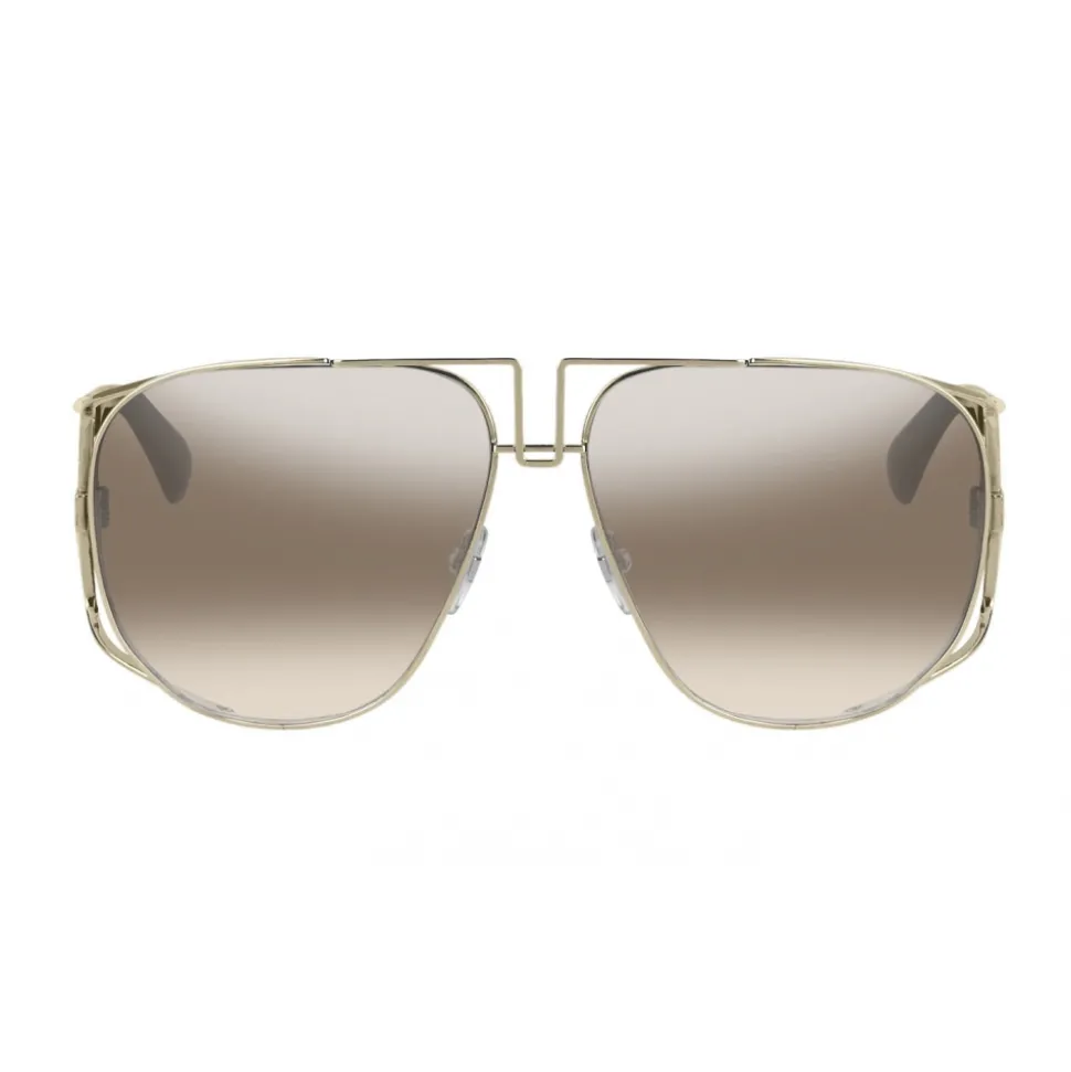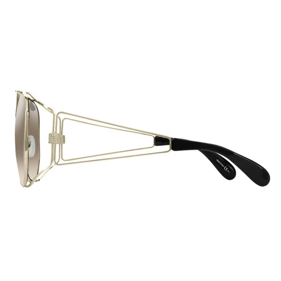 GIVENCHY Reveal sunglasses in metal with a gold finish, frame with graphic carvings and U-shaped bridge, silver mirrored lenses with a dégradé and smoky brown effect, carved temples with the engraved 4G logo and brown Havana acetate end pieces. Sold with a hard case.