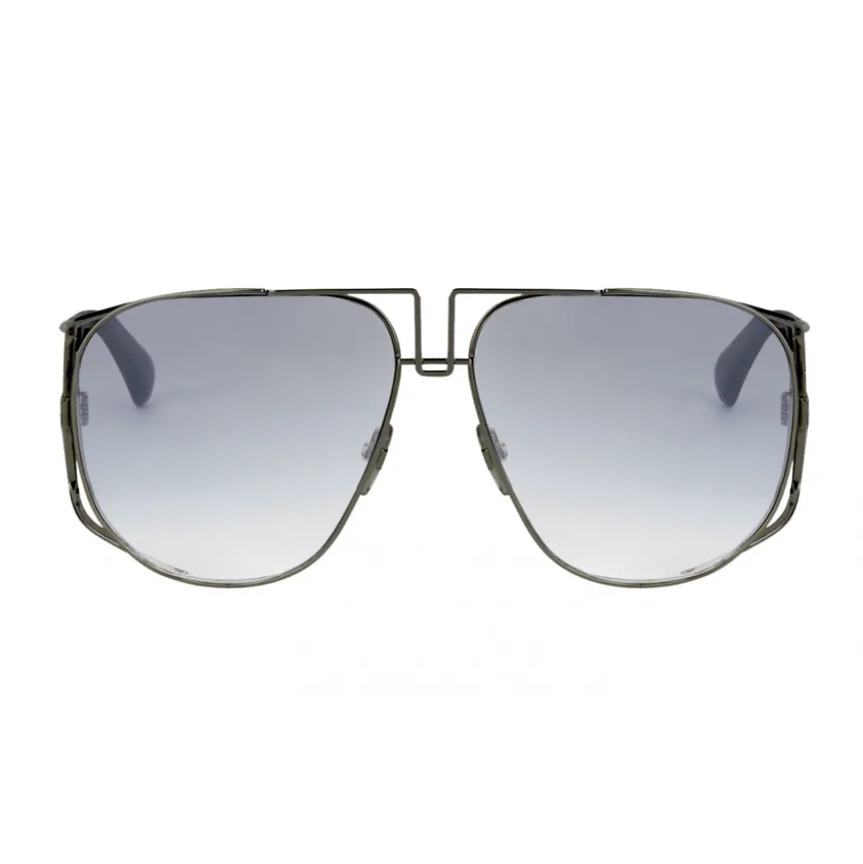 GIVENCHY Reveal sunglasses in metal with a silver finish, frame with graphic carvings and U-shaped bridge, silver mirrored lenses with a dégradé and smoky gray effect, carved temples with the engraved 4G logo and matt black acetate ends. Sold with a hard case.
