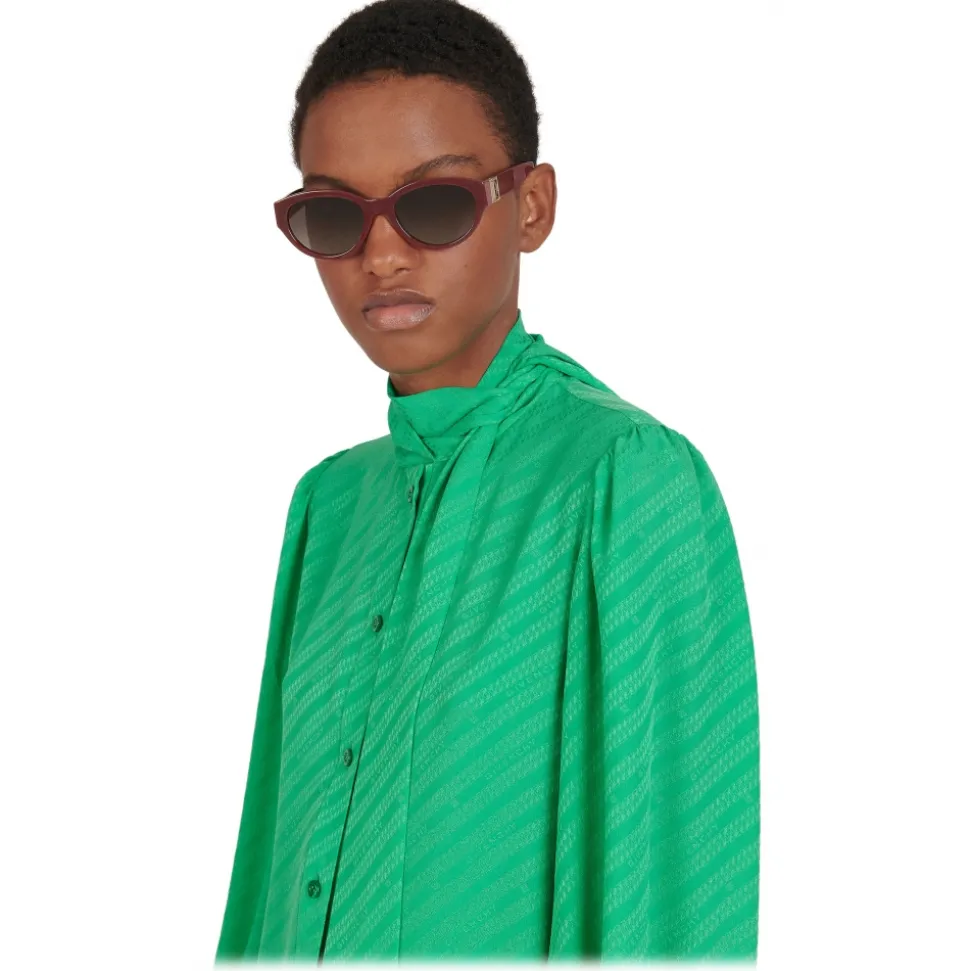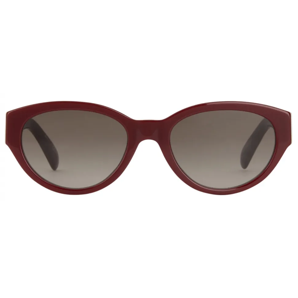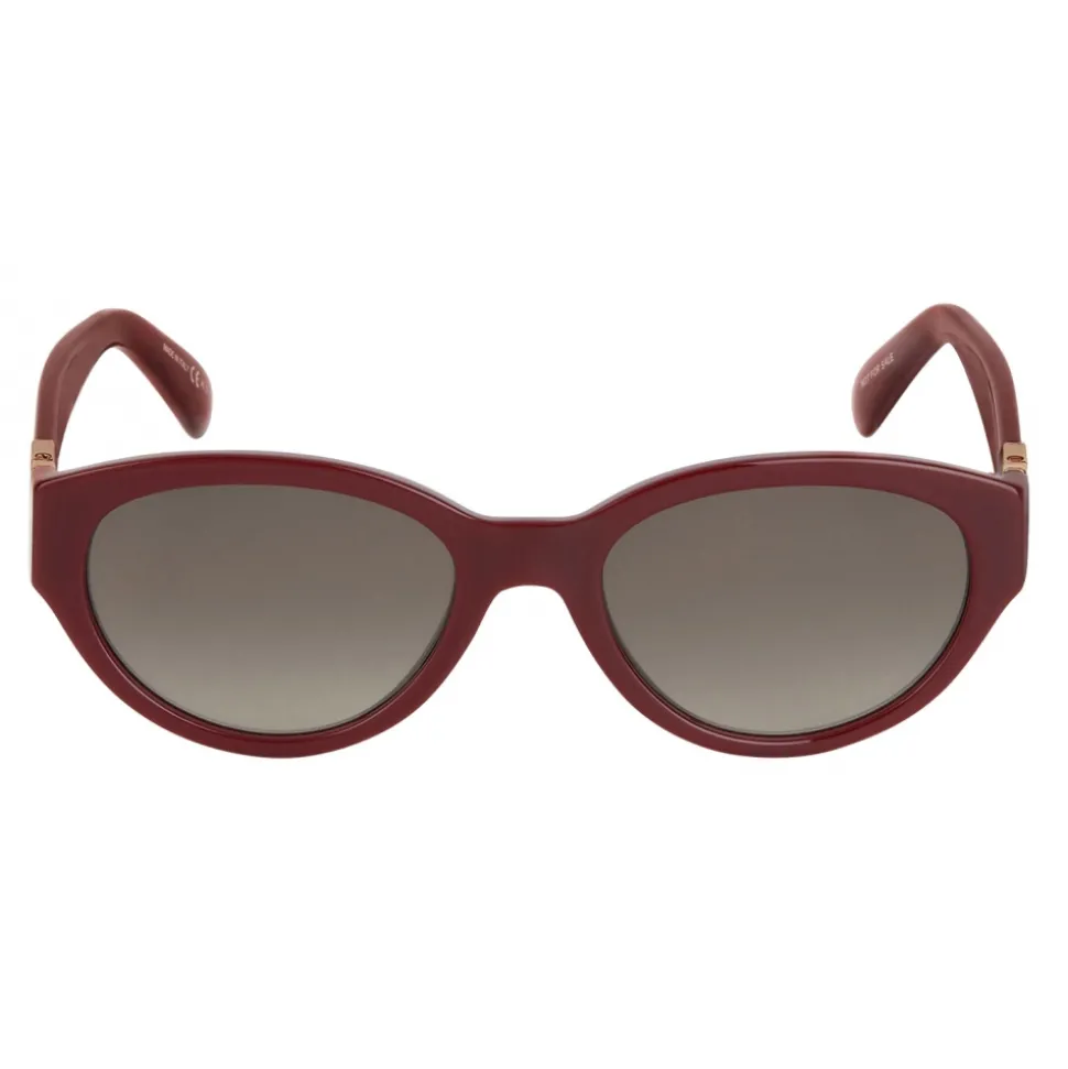 GV3 sunglasses with rounded frame in burgundy acetate with brown gradient-effect lenses and Double G piece in gold-finish metal on the temples. UV protection rating: 3. Sunglasses come in a hard case.