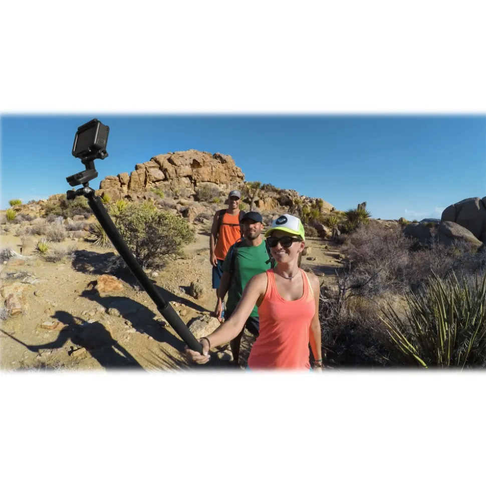Integrated ball-and-socket design at end of pole allows you to make adjustments or swivel your GoPro 360° without stopping to un-mount your camera