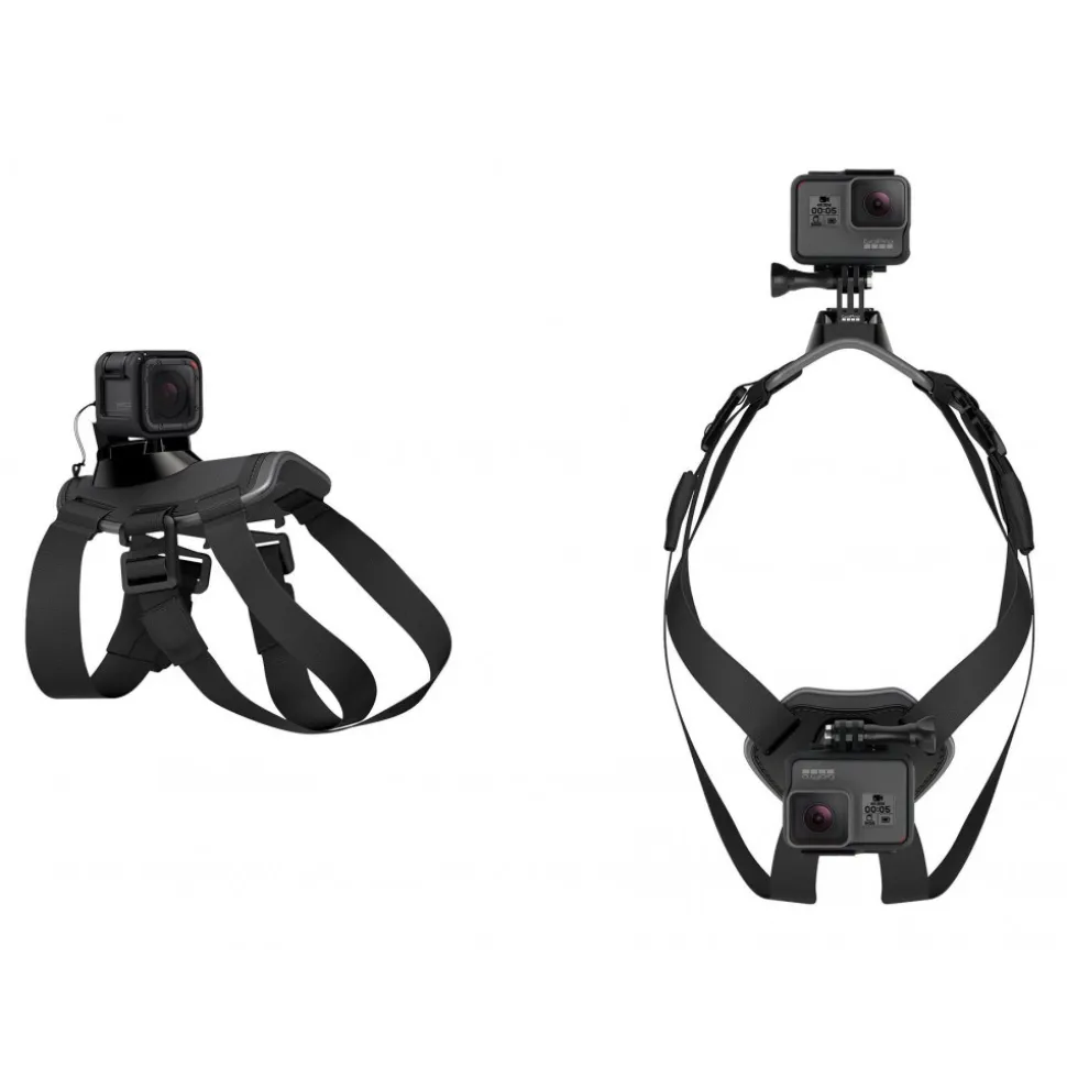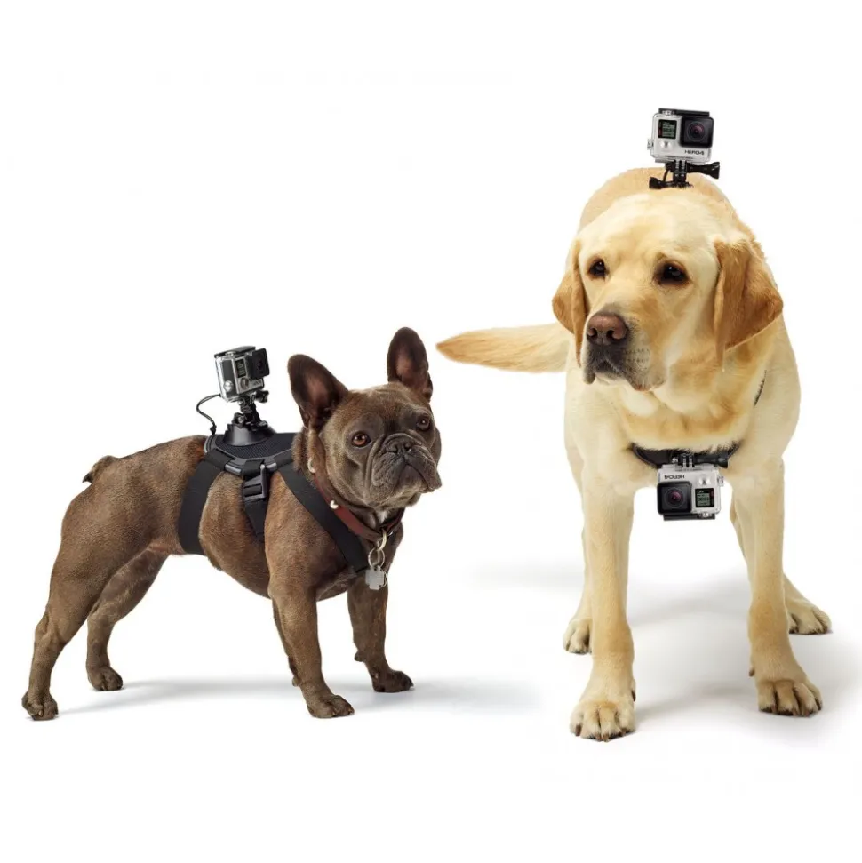 Mount your GoPro to your dog to capture the world from his point of view. This harness features two mounting locations for a variety of perspectives: the chest, for bone-chewing, digging and front-paw action, and the back, for over-the-head shots of running, jumping, fetch and more. Made of washable, water-friendly material, your dog can swim, play and get dirty without a worry. Soft, padded construction keeps your pet comfortable. Fully adjustable to fit small, medium and large breed dogs from 15 to 120 lbs (7 to 54 kg). Chest mount is removable for smaller dogs.