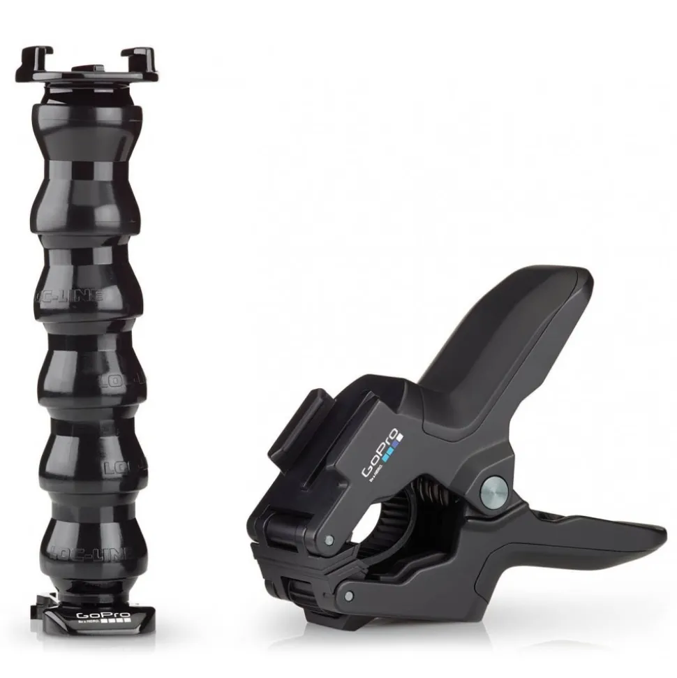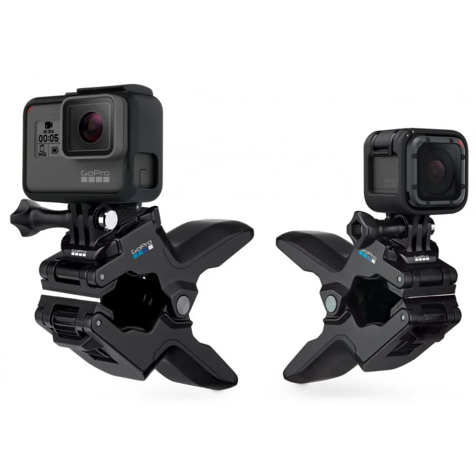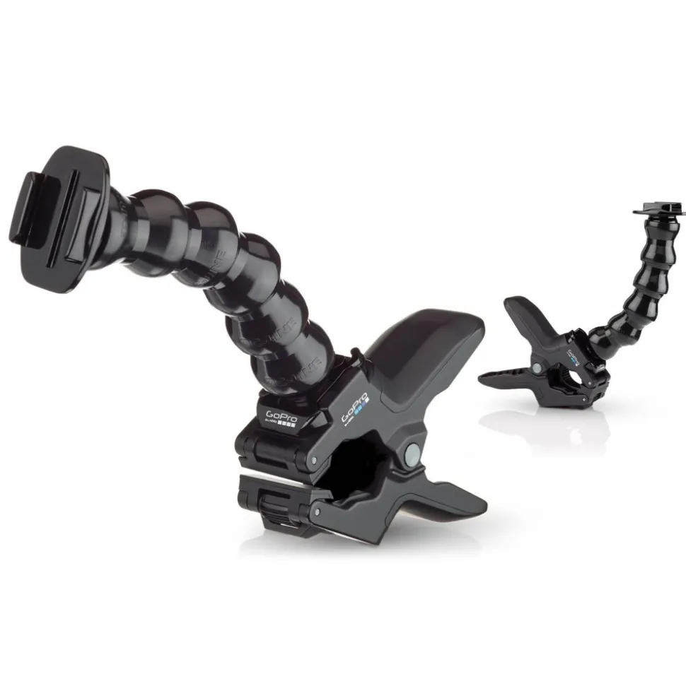Clamp your GoPro to objects ranging in size from 0.25 to 2in (0.6 to 5cm) in diameter. Attach your camera directly to the clamp for low-profile mounting, or use the optional neck to achieve a wider range of camera-angle adjustability. Jaws securely grips irregular shapes and super slim objects thanks to its innovative design.