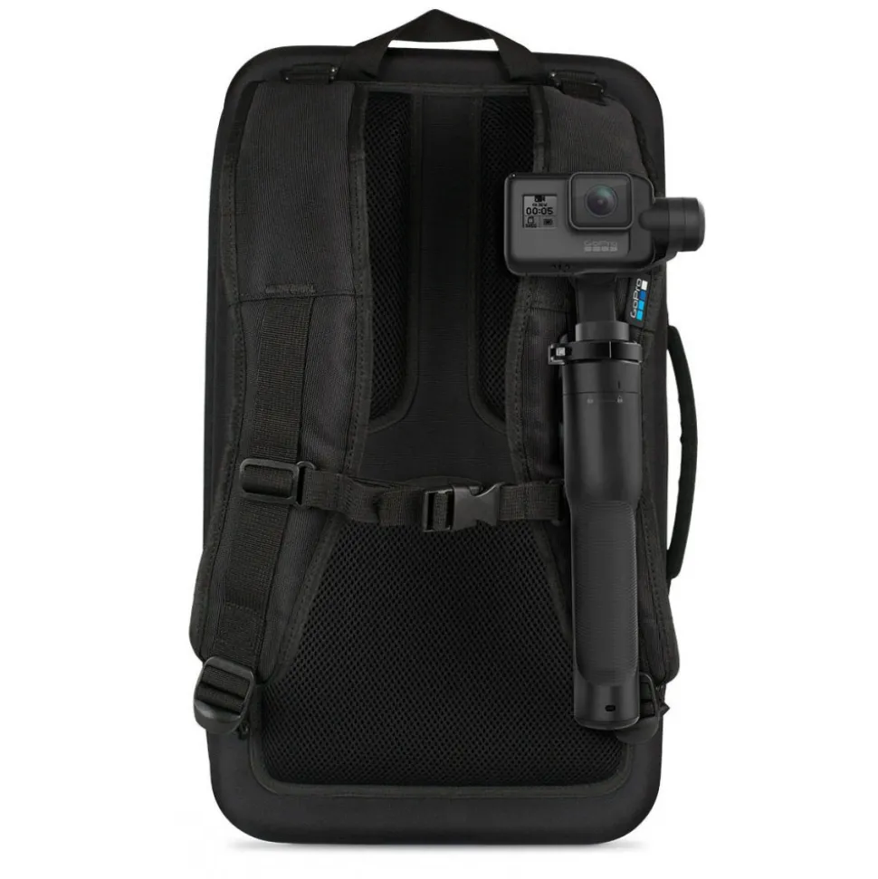 The Karma Case is the compact go-anywhere pack that makes it easy to take Karma along on any adventure. Wear it as a backpack or easily stow it in an overhead bin. The built-in shoulder mount even lets you capture every step of the journey with your Karma Grip. The weather-resistant shell and custom-molded interior protect against bumps while locking out light rain and snow.