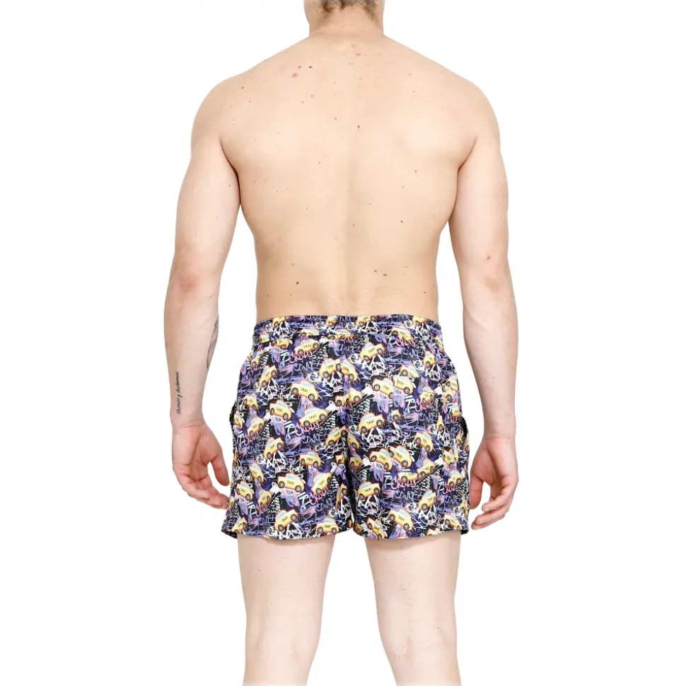 Mid-thigh boxer shorts with drawstring waist and internal mesh.