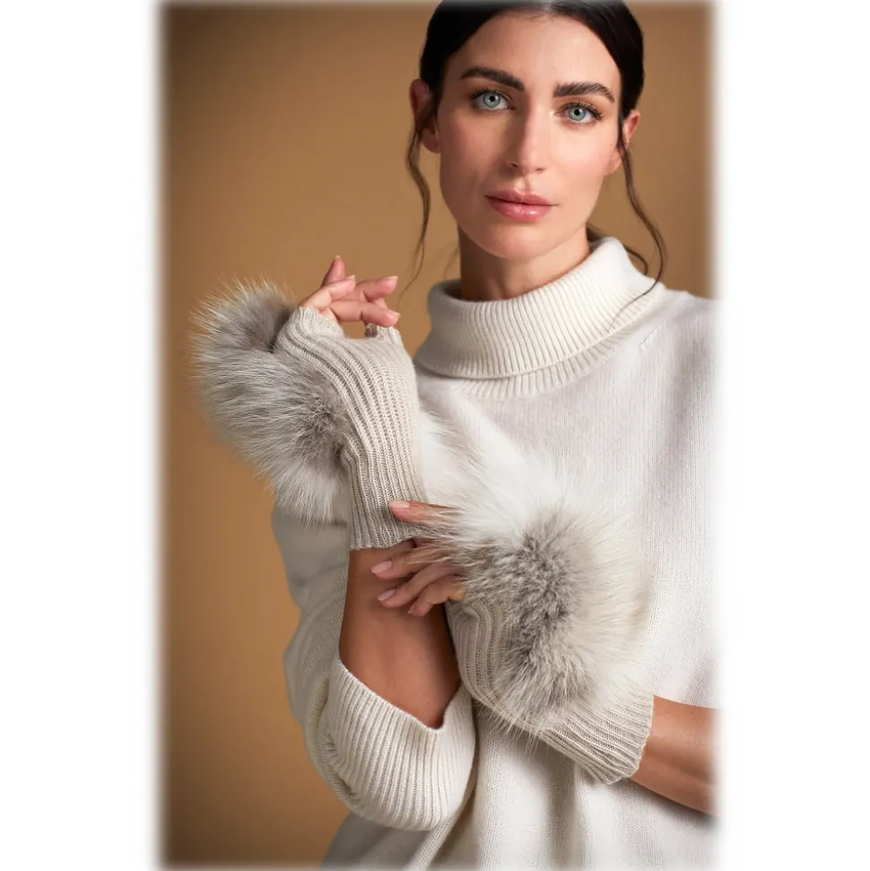 The Finnish fox fur, in white and natural grey, gives a refined and sophisticated look, while the wool knit guarantees comfort and softness. Each pair of Gaia gloves is made with artisanal care in Italy, guaranteeing maximum quality and durability over time.
