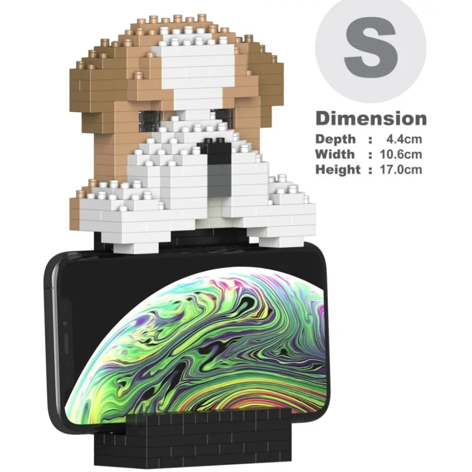 Jekca – English Bulldog Phone Stand 01S – Lego – Sculpture – Construction – 4D – Brick Animals – Toys