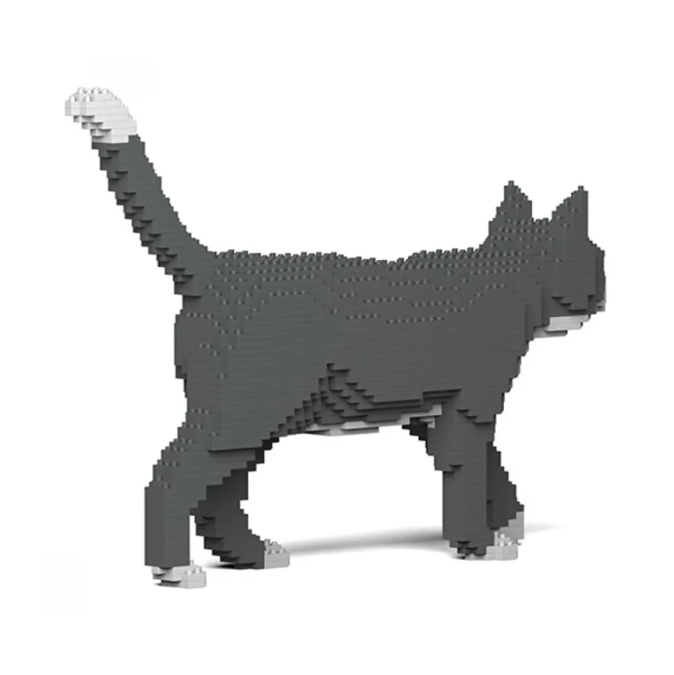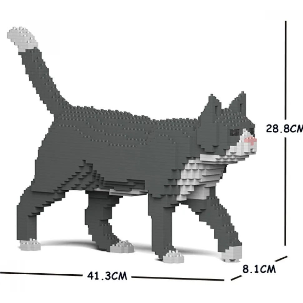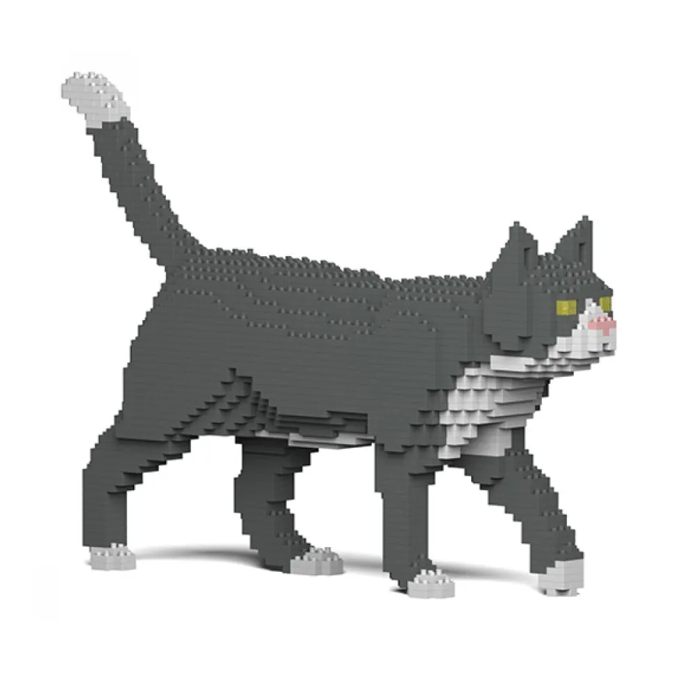 Jekca – Grey Tuxedo Cat 02S – Lego – Sculpture – Construction – 4D – Brick Animals – Toys