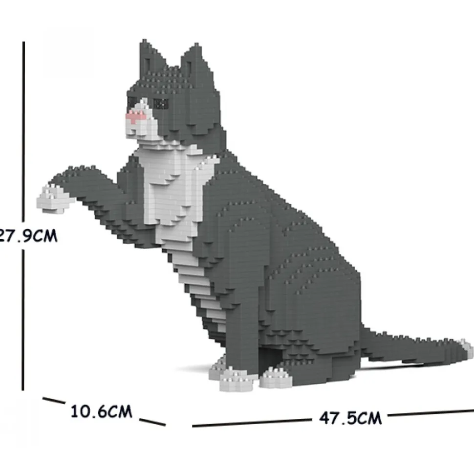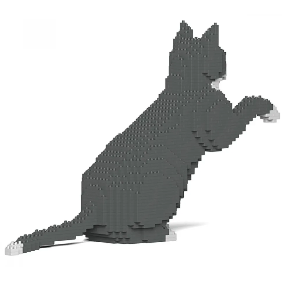 Jekca – Grey Tuxedo Cat 03S – Lego – Sculpture – Construction – 4D – Brick Animals – Toys