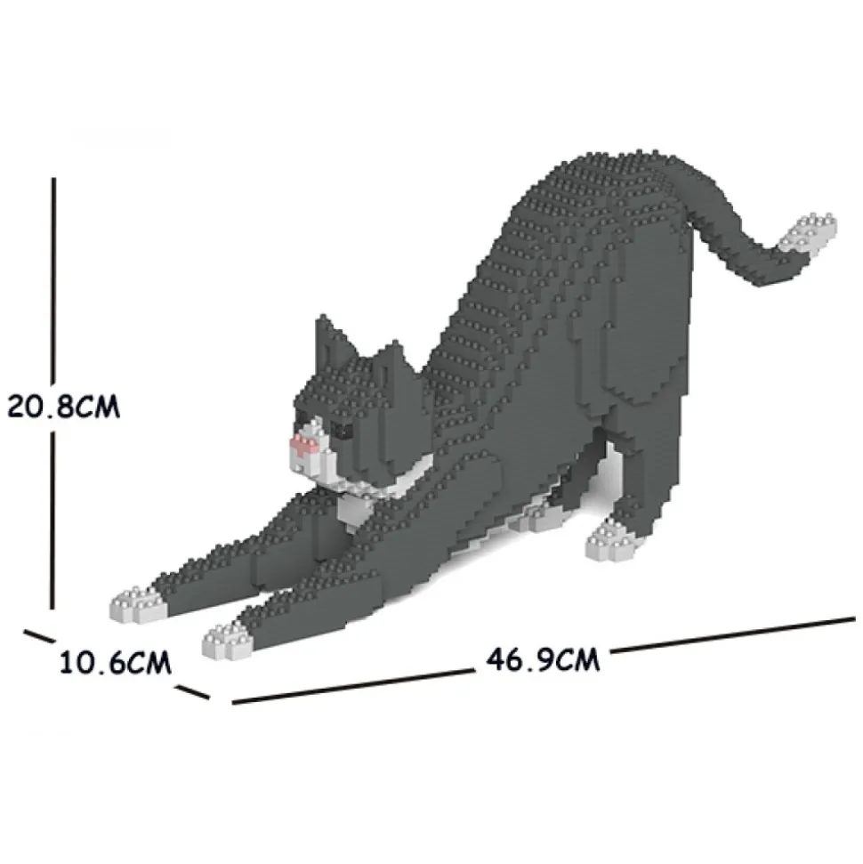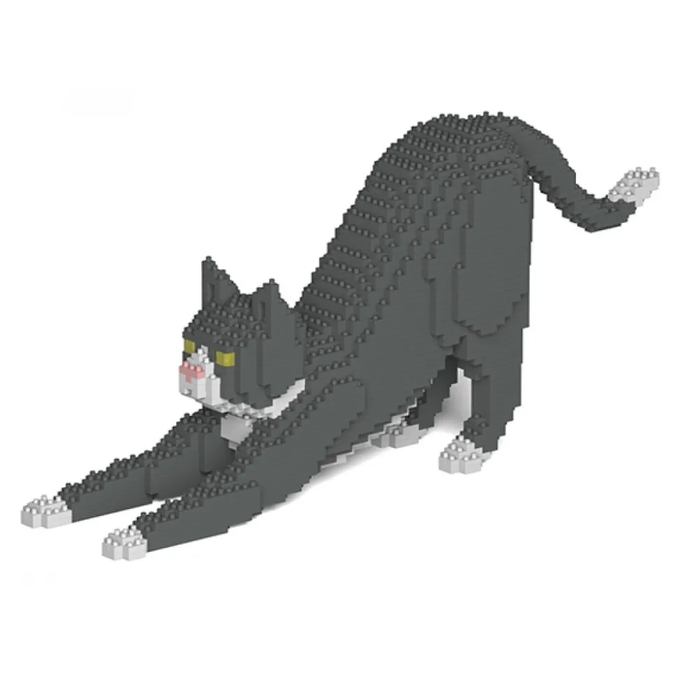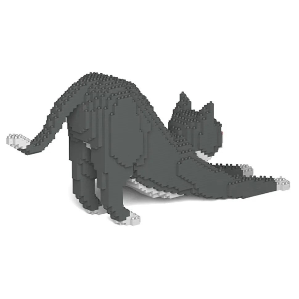 Jekca – Grey Tuxedo Cat 04S – Lego – Sculpture – Construction – 4D – Brick Animals – Toys