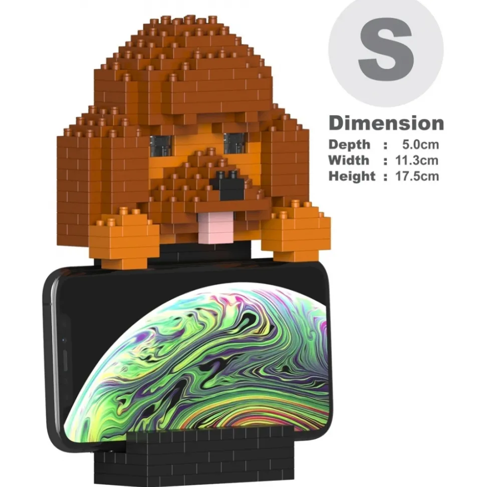 Jekca – Poodle Phone Stand 01S – Lego – Sculpture – Construction – 4D – Brick Animals – Toys