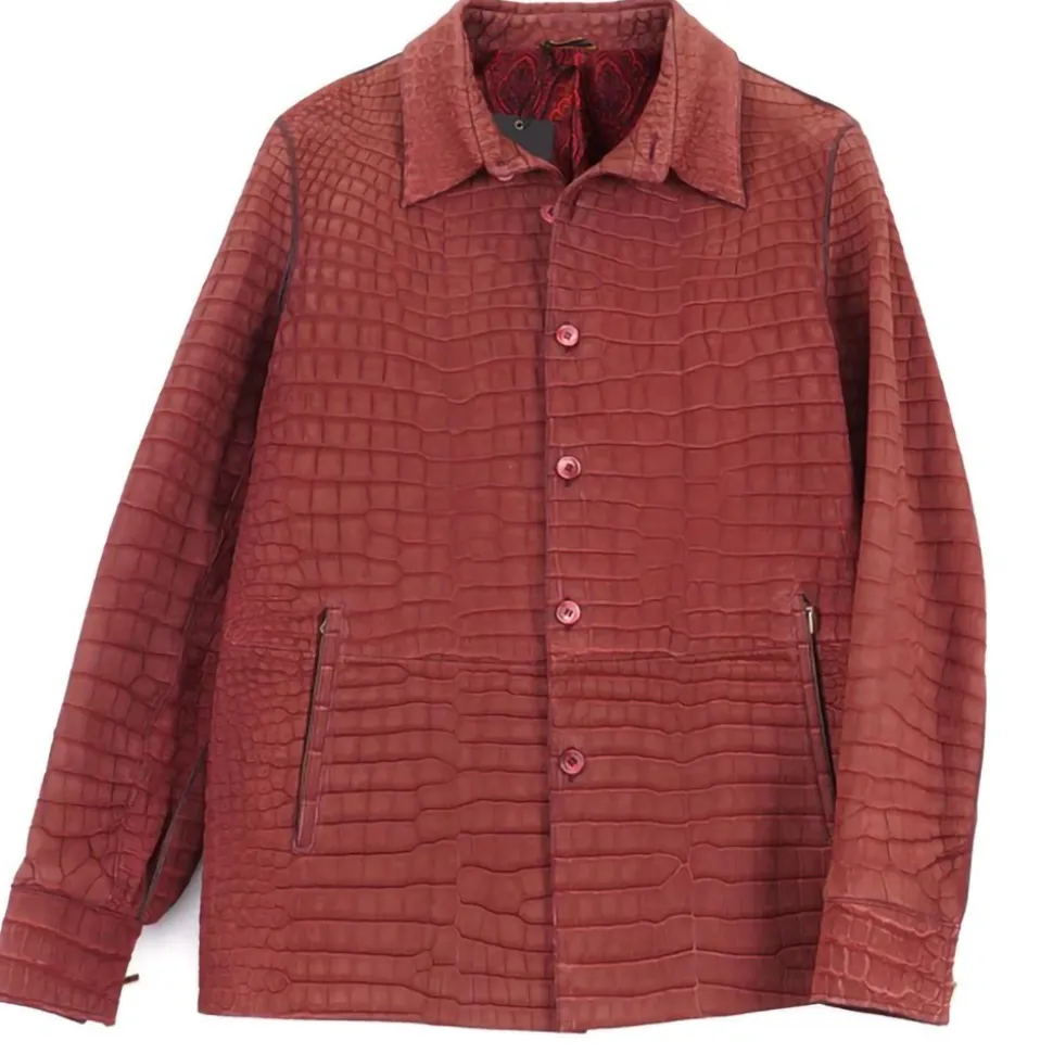 Jovanny Capri – Magnificent Suede Shirt with Crocodile Motif – Leather Shirt – Luxury High Quality
