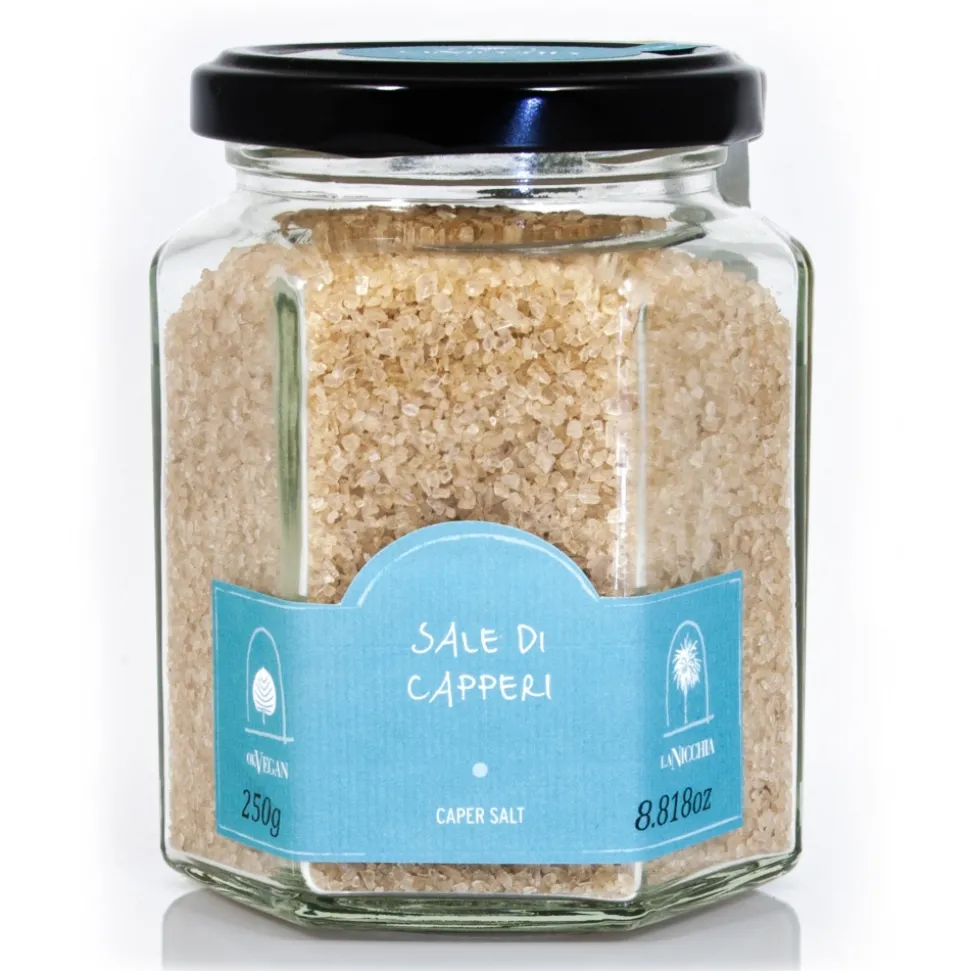 A caper-less caper salt! Long regarded as a waste product from the curing process, this sea salt is imbued with the vegetation liquid released by the caper.