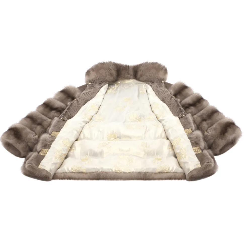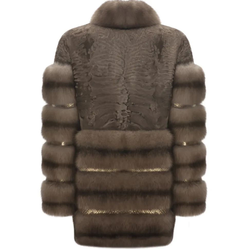 La Prima Luxury – Alisa – Swakara Perisano Fur – Dove Sable Inserts – Hand-Painted Python – Hooks in 18 kt Gold – Fur Coat – Luxury Exclusive Collection
