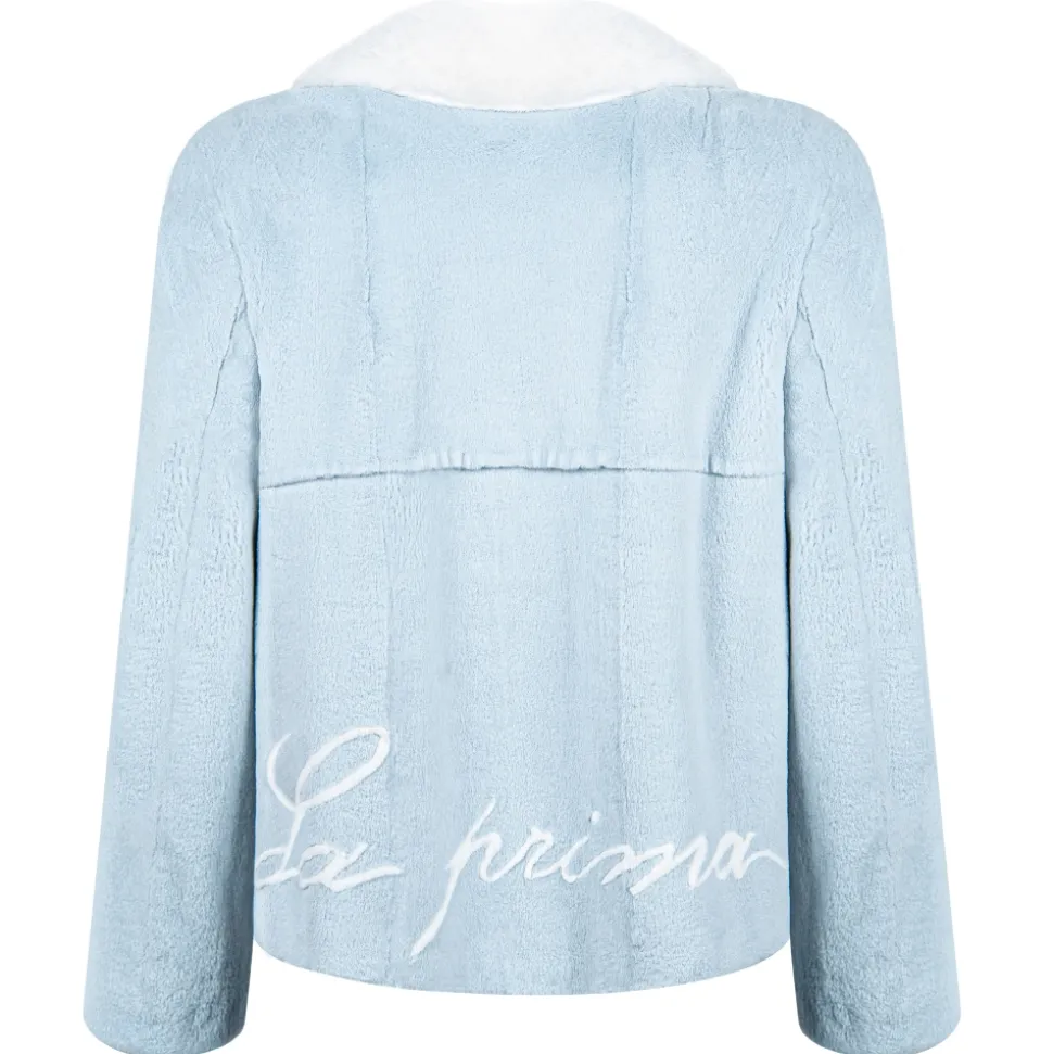 La Prima Luxury – La Prima – Light Blue – Vison Fur 8mm Shaved With White Mink – 18 kt Gold Hooks – Fur Coat – Luxury Exclusive Collection