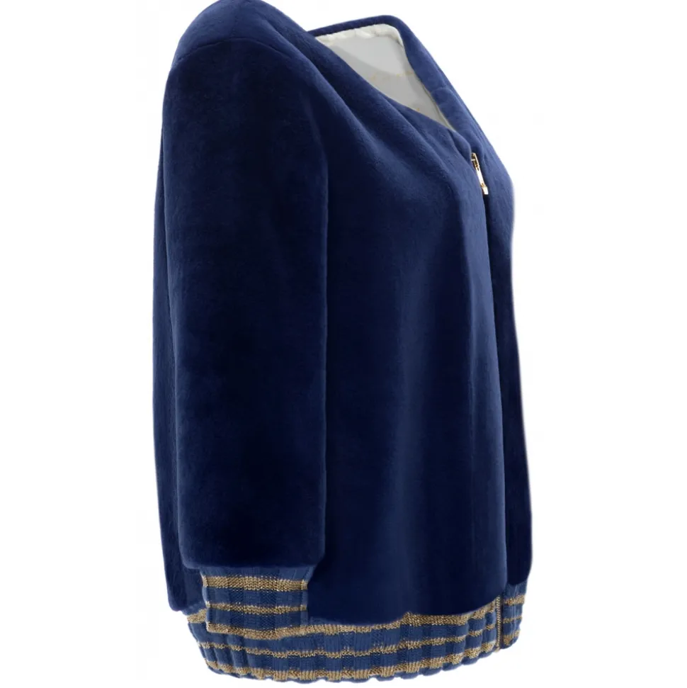 La Prima Luxury – Onda – 8 mm Shaved Mink Fur In Navy – Cashmere Knit Edges – Gold Thread – Fur Coat – Luxury Exclusive Collection