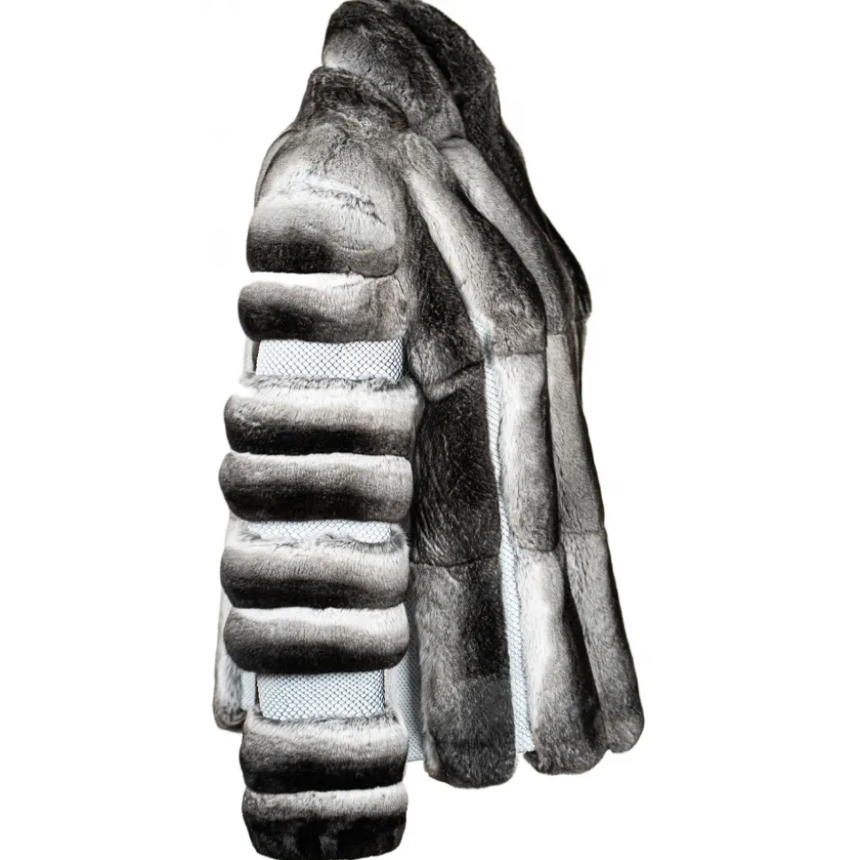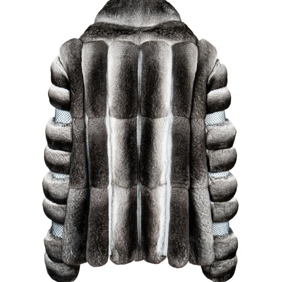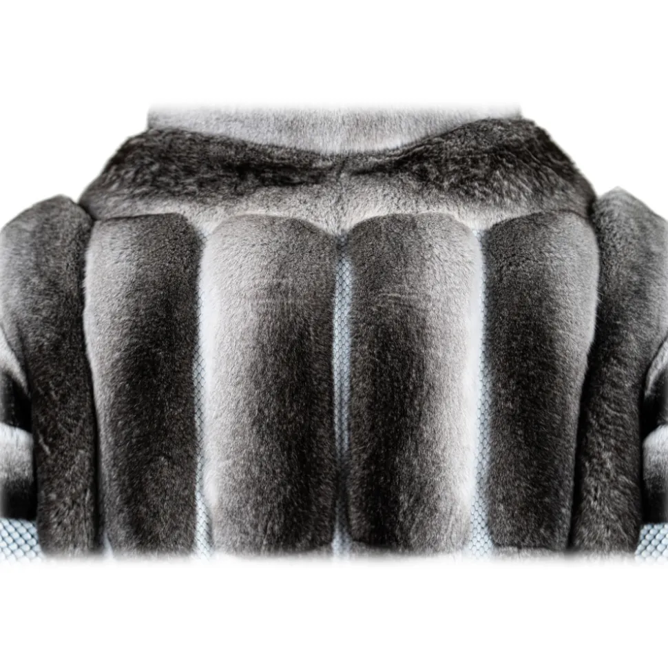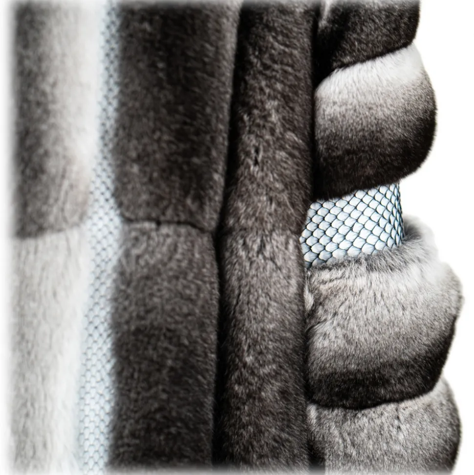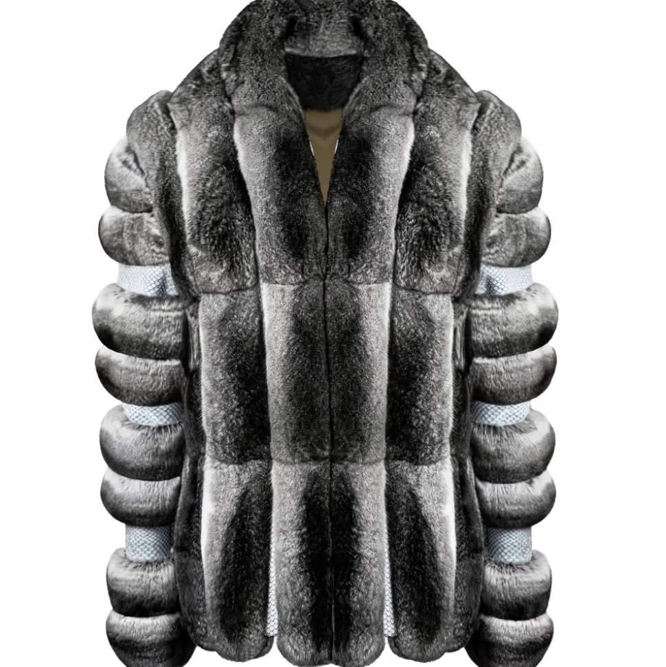 La Prima Luxury – Piuma – Black Velvet Chinchilla Fur – Hand Painted Python Insert – 18 kt Gold Hooks – Fur Coat – Luxury Exclusive Collection