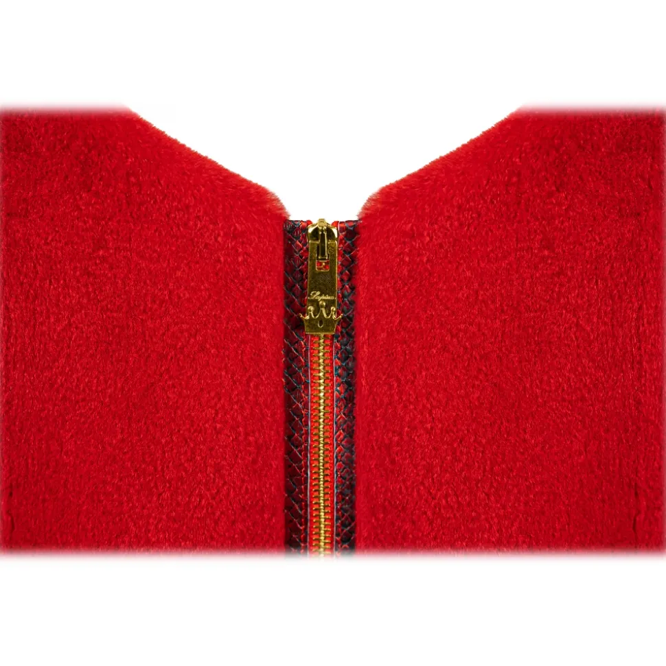 La Prima Luxury – Rubino – 8 mm Shaved Mink Fur in Ruby – Cashmere and Gold Thread Edges – Fur Coat – Luxury Exclusive Collection