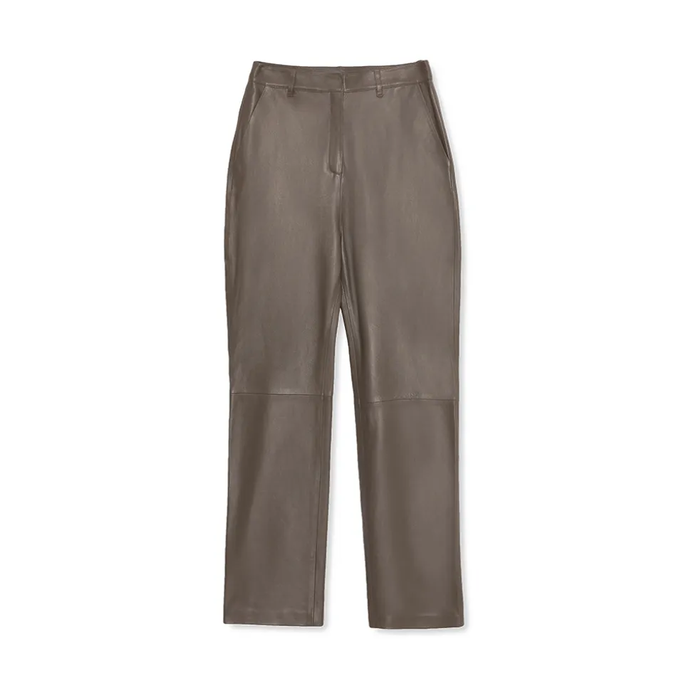 Ezpeleta is our slightly flared high-waisted tailored lambskin leather pants.