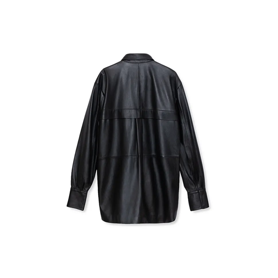 Junin is our amazing lambskin leather oversized shirt with concealed front snaps and a front pocket detail.