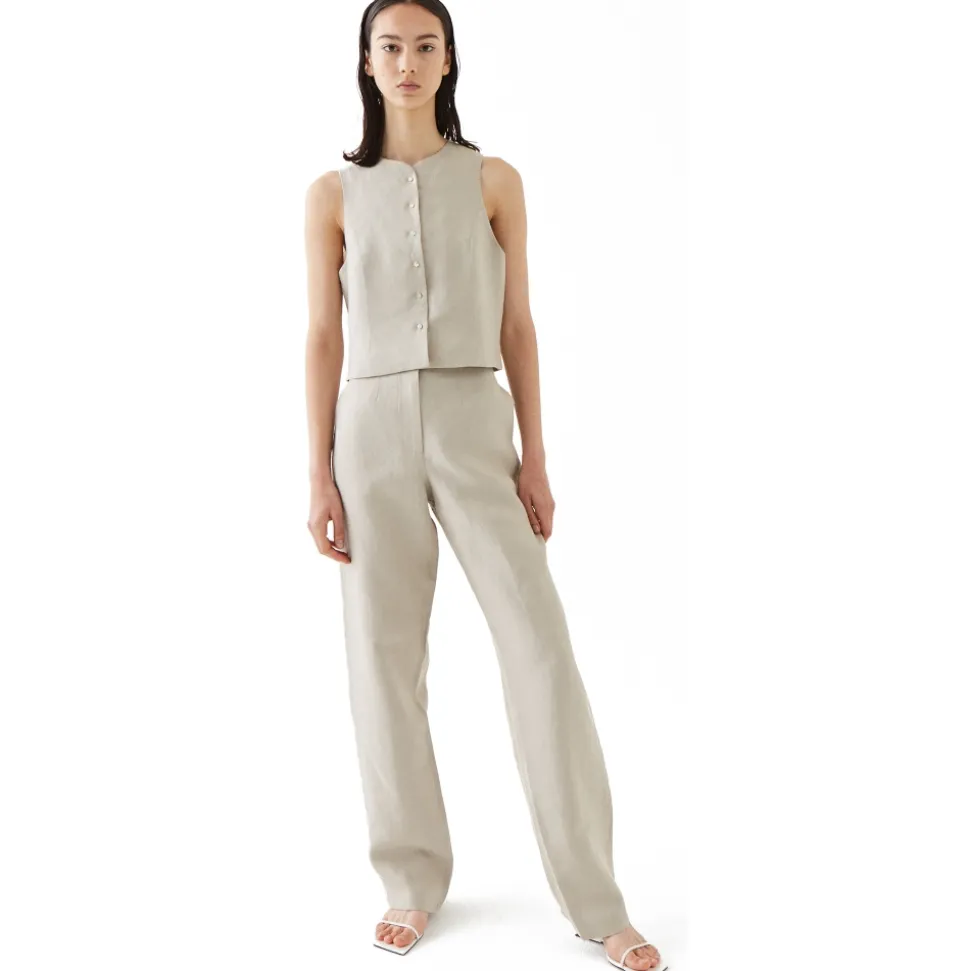 Trelew are our high-waisted straight cut luxury linen slacks.
