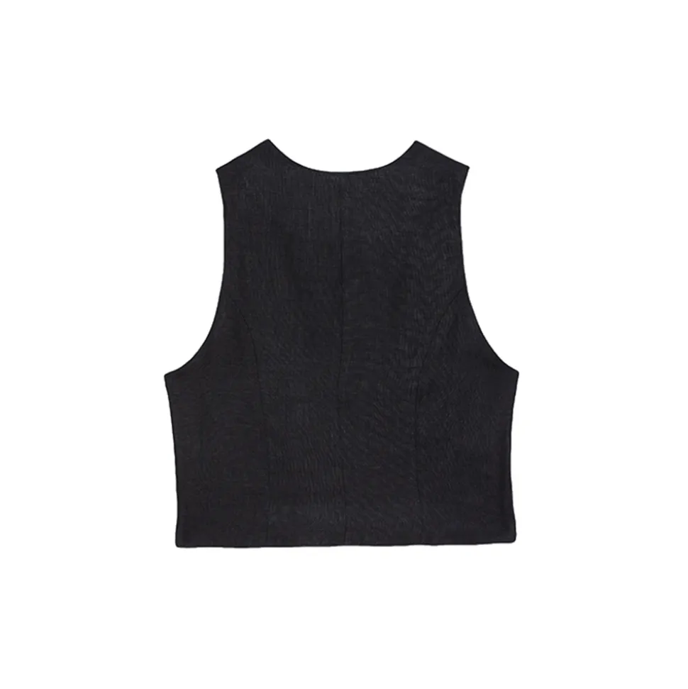 La Rando – Trelew Vest – Linen – Black – Artisan Top – Luxury High Quality Leather
