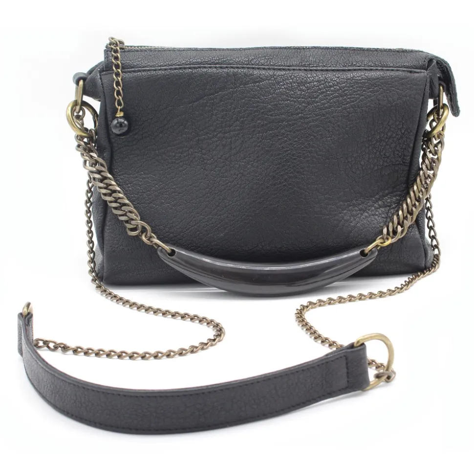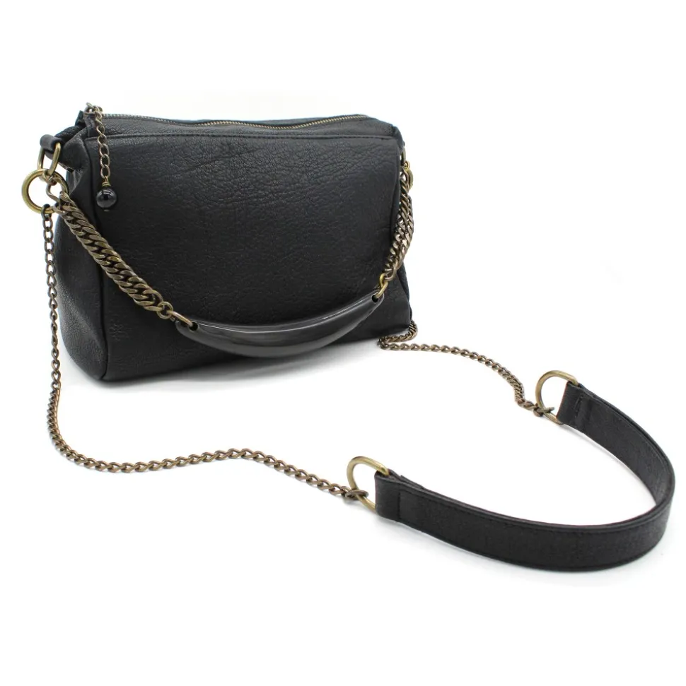 Laura B – Bauletto Leather – Leather and Mesh Bag – Black – Strap Bag