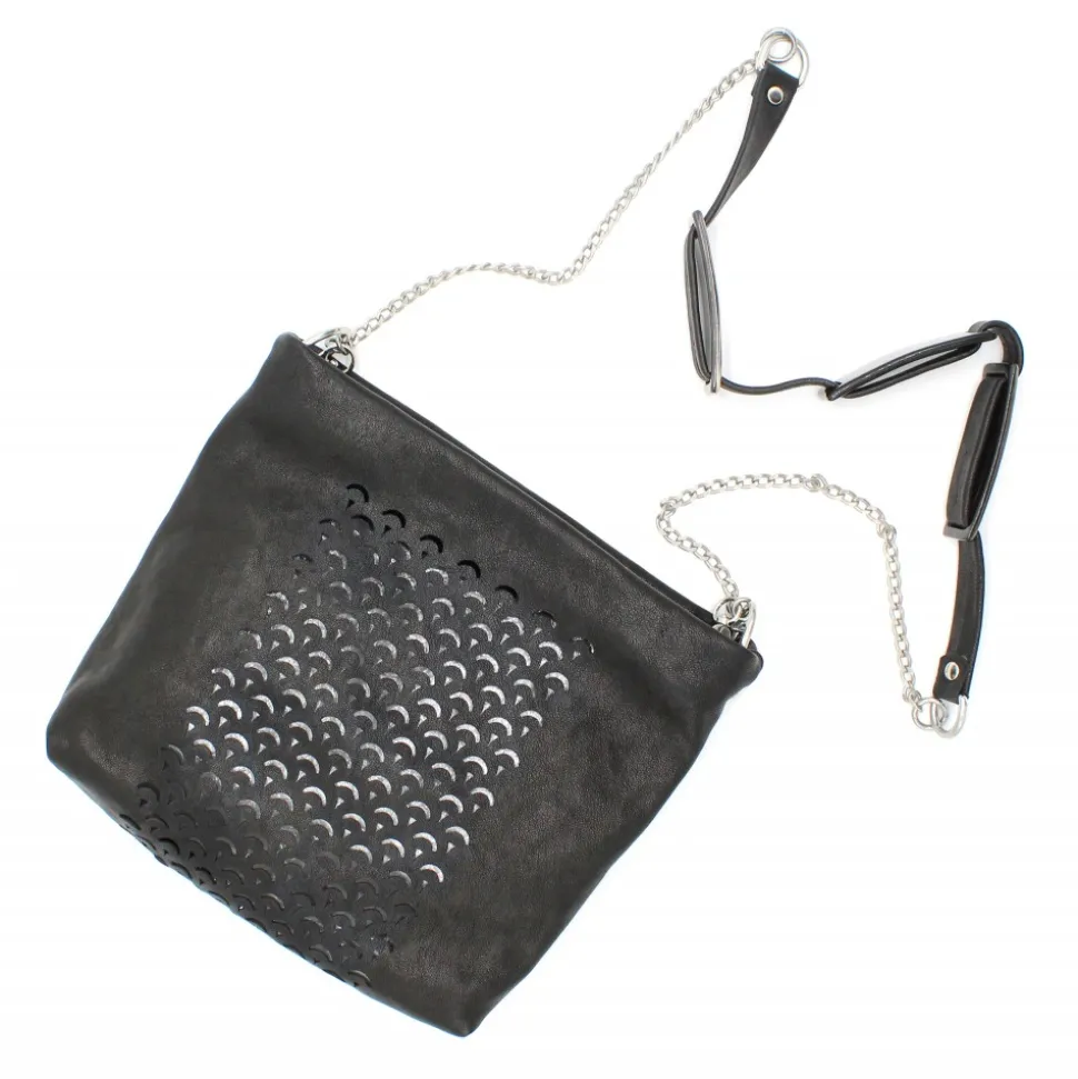 Black lamb leather – Horn details. Zip closure. No lining. Interior zipped pocket.