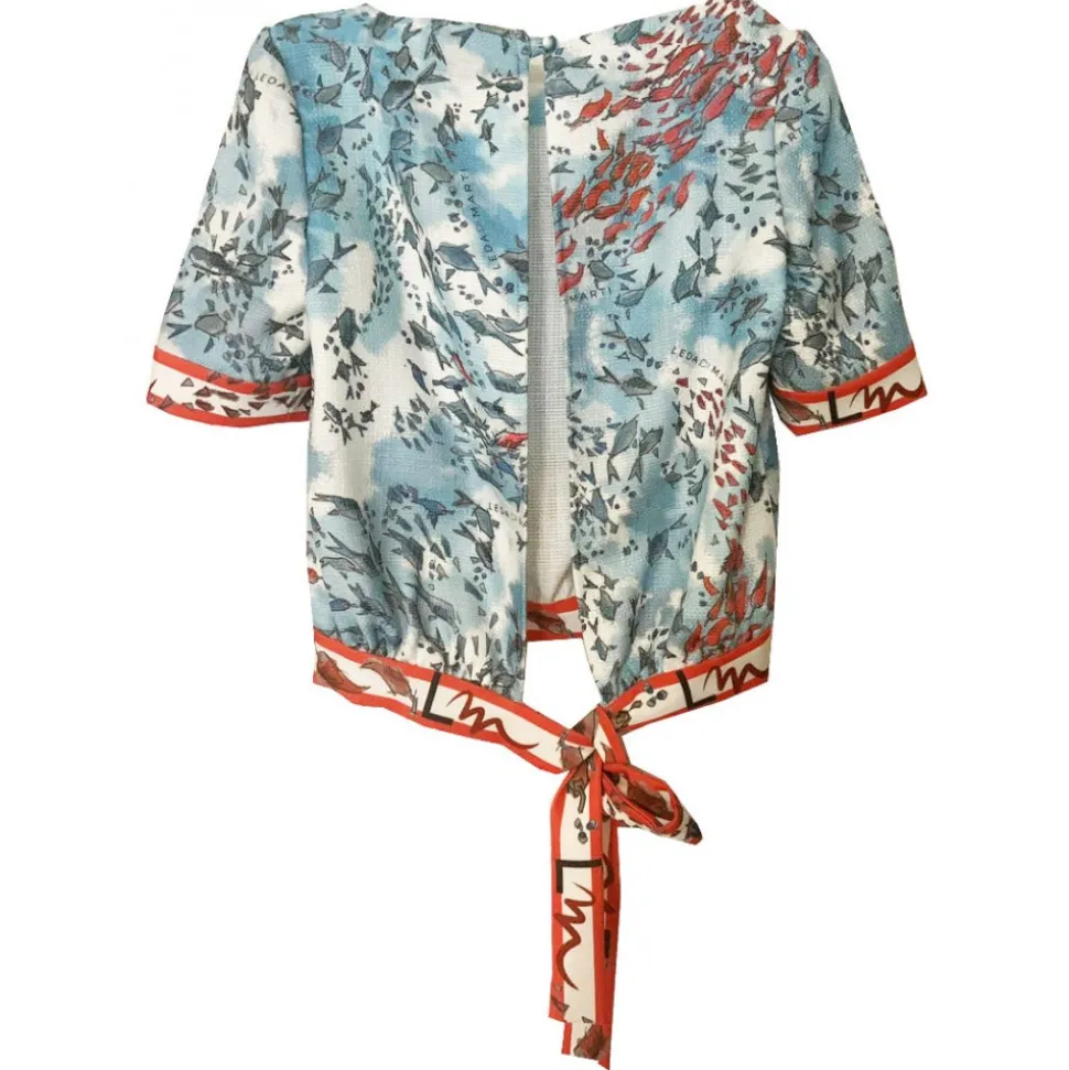 Leda Di Marti – Krill Top – Ocean Print Red Decoration – Haute Couture Made in Italy