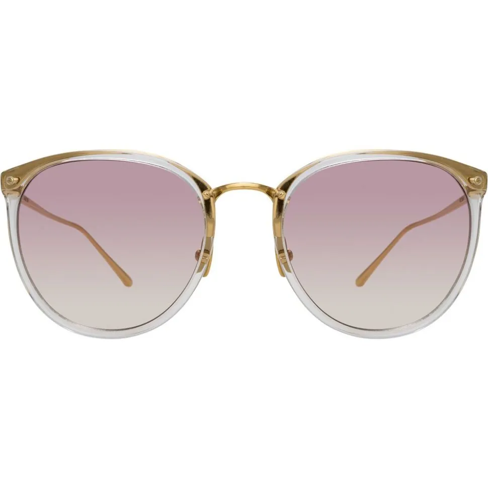 Reimagining our bestselling silhouette in whimsical colours inspired by the world of Slim Aarons, these oversized oval sunglasses from Linda Farrow are handmade from an elegant combination of 18-22 carat light gold-plated hypoallergenic titanium and hand polished clear Italian acetate.