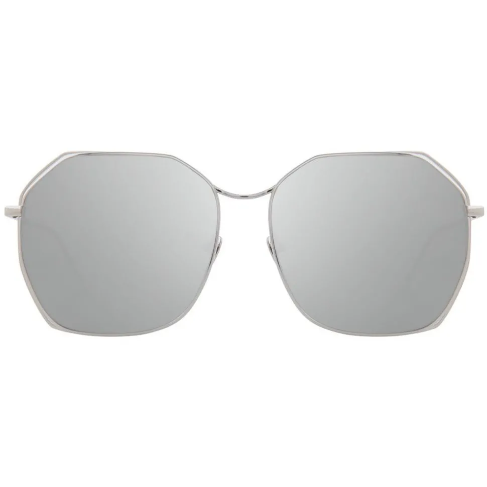 Bringing together elements of 70s styling with luxurious materials, these oversized Linda Farrow sunglasses are made by hand entirely from 18-22 carat white gold-plated lightweight titanium. A co-ordinating frame creates an unusual floating effect between the rims, which contour the platinum precious lenses.