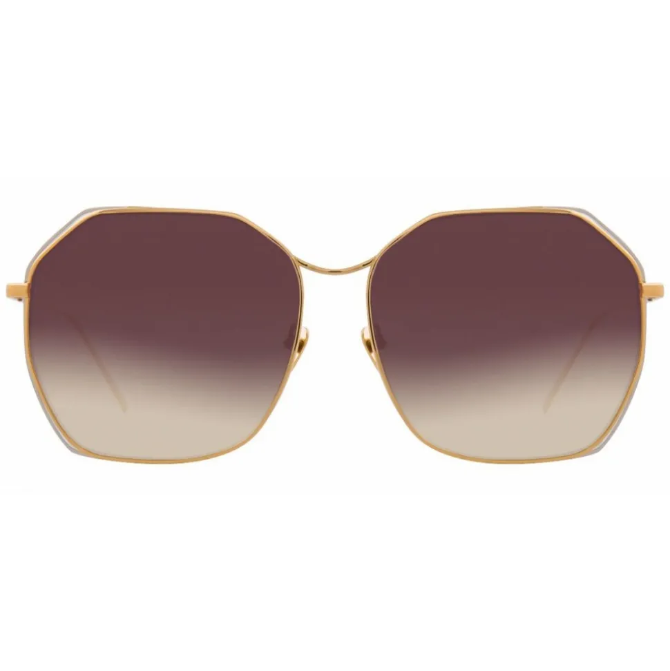 Bringing together elements of 70s styling with luxurious materials, these oversized Linda Farrow sunglasses are made by hand from 18-22 carat gold-plated lightweight titanium. A co-ordinating frame creates an unusual floating effect between the rims, which contour the brown gradient lenses.