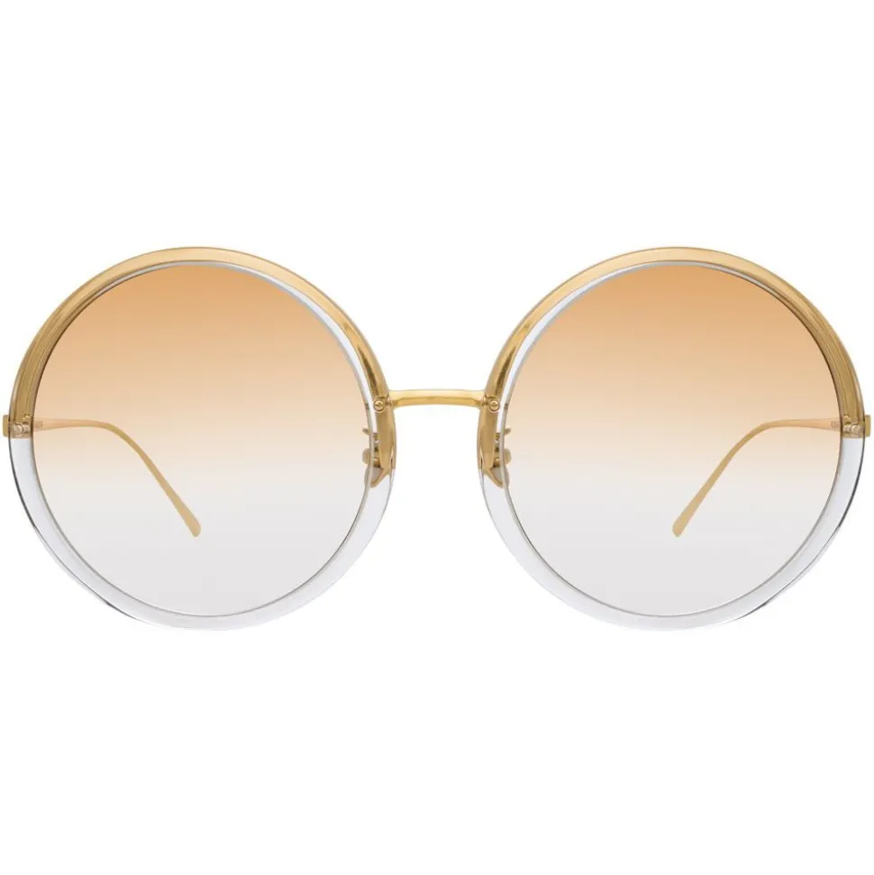 This season, the timeless 457 sunglass takes you on a journey through Morocco, with earthy tan gradient lenses and light gold-plated ultra lightweight titanium temples evoking balmy, golden dusks. Framed by translucent Italian acetate, this classic round sunglass is complete with signature Linda Farrow detailing and branding.
