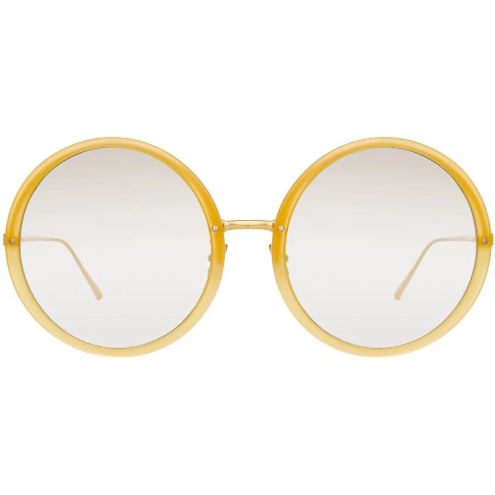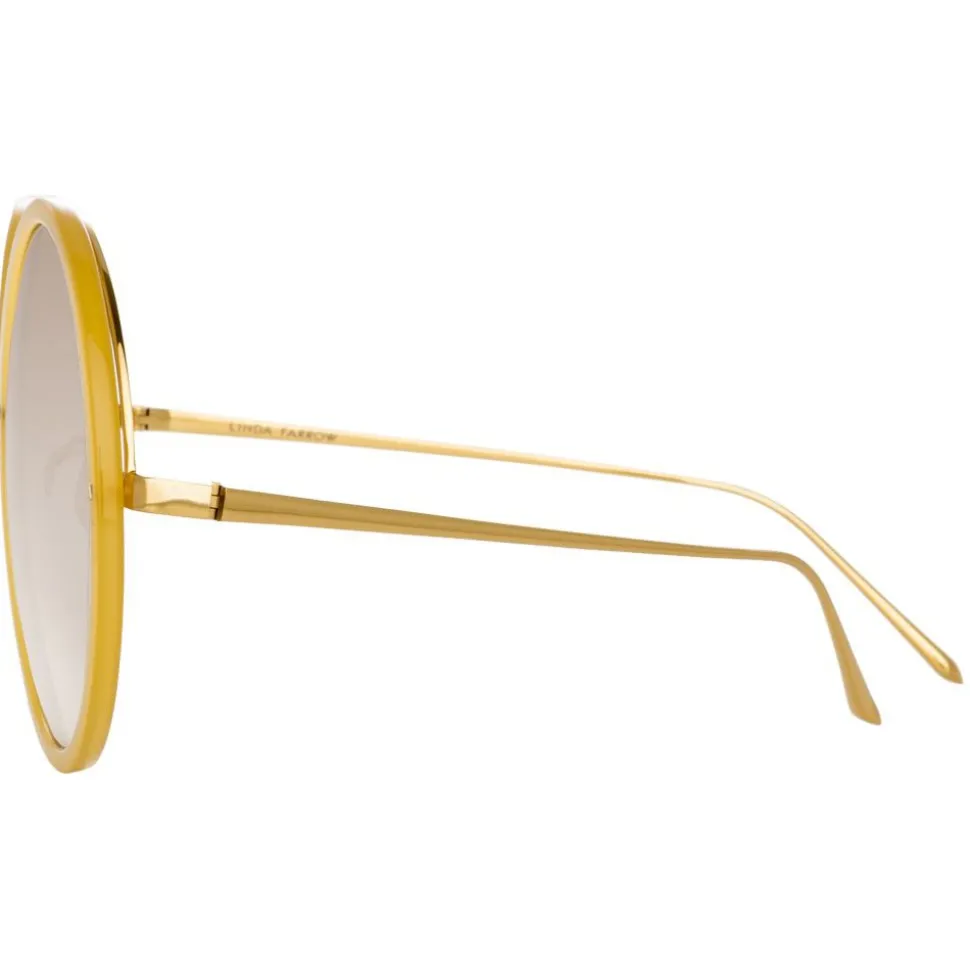 This season, the timeless 457 sunglass takes you on a journey through Morocco, with dusky taupe gradient lenses and light gold-plated ultra lightweight titanium temples evoking balmy, golden dusks. Framed by bold, yellow Italian acetate, this classic round sunglass is complete with signature Linda Farrow detailing and branding.