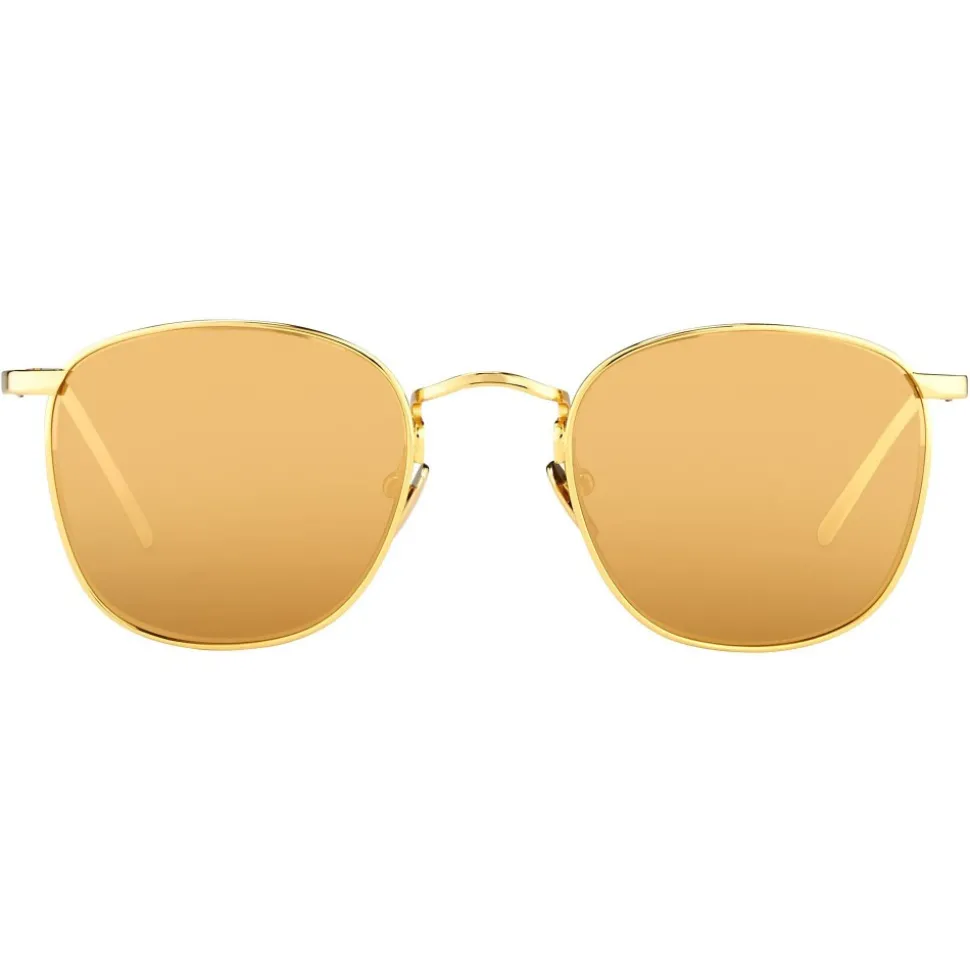 Handcrafted entirely from 18-22 carat gold-plated Japanese titanium, these Linda Farrow square browline sunglasses are the epitome of modern luxury. With co-ordinating gold precious lenses, the sleek, lightweight temples are attached at the top of the frames.