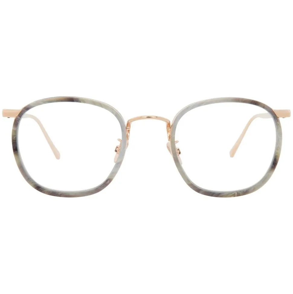 Inspired by natural elements and vintage styling, these oval optical glasses from Linda Farrow are handmade from an elegant combination of 18-22 carat rose gold-plated titanium and hand polished grey marble Italian acetate. Rose gold-plated lightweight titanium inset the frame runs into the curved nose bridge and temples, finished with characteristic curved Japanese bulb tips and adjustable nose pads for added comfort. Signature raised pins and the Linda Farrow logo on the inside of the temple completes this timeless design.