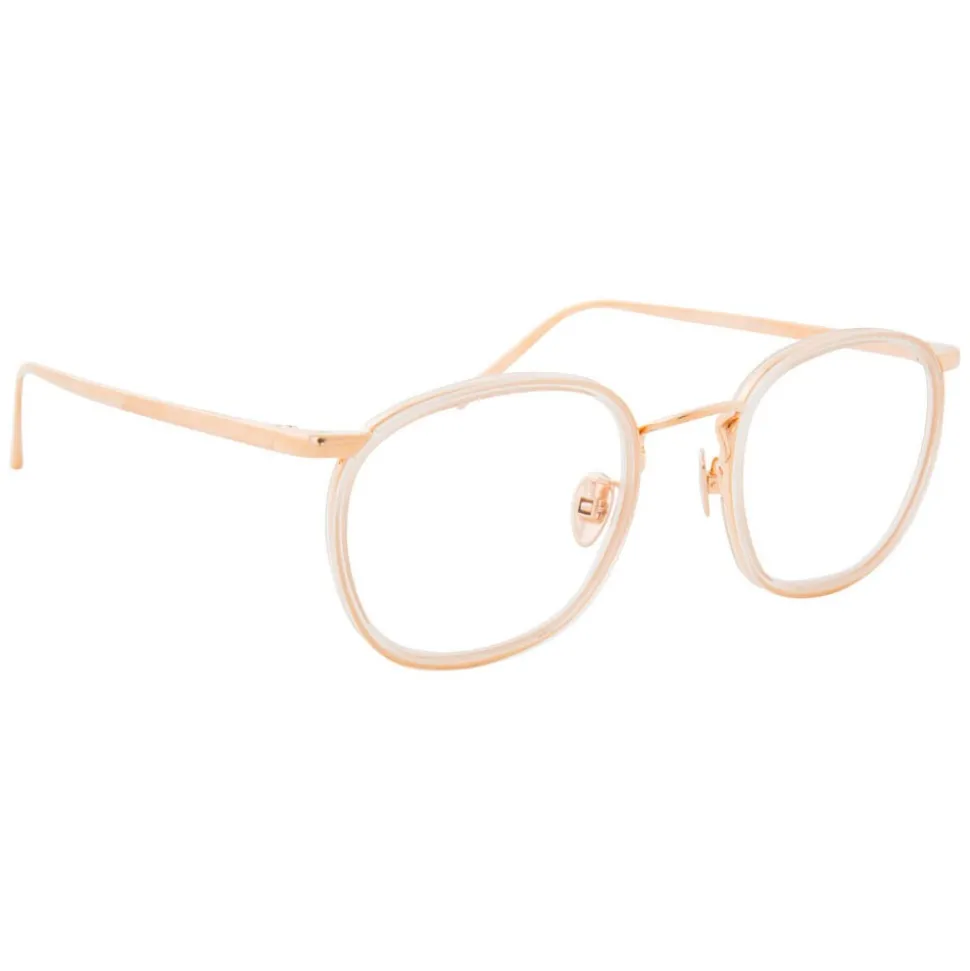 Inspired by vintage styling, these oval optical glasses from Linda Farrow are handmade from an elegant combination of 18-22 carat rose gold-plated titanium and hand polished ash acetate. Rose gold-plated lightweight titanium inset the frame runs into the curved nose bridge and temples, finished with characteristic curved Japanese bulb tips and adjustable nose pads for added comfort. Signature raised pins and the Linda Farrow logo on the inside of the temple completes this timeless design.
