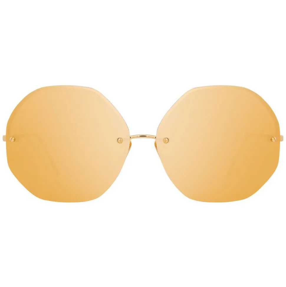 In an oversized angular silhouette, these luxurious Linda Farrow sunglasses are handcrafted with 18-22 carat yellow gold-plated titanium. Running through the curved nose bridge, along the back top half of the frame and into slimline temples, these sunglasses feature co-ordinating gold precious lenses.