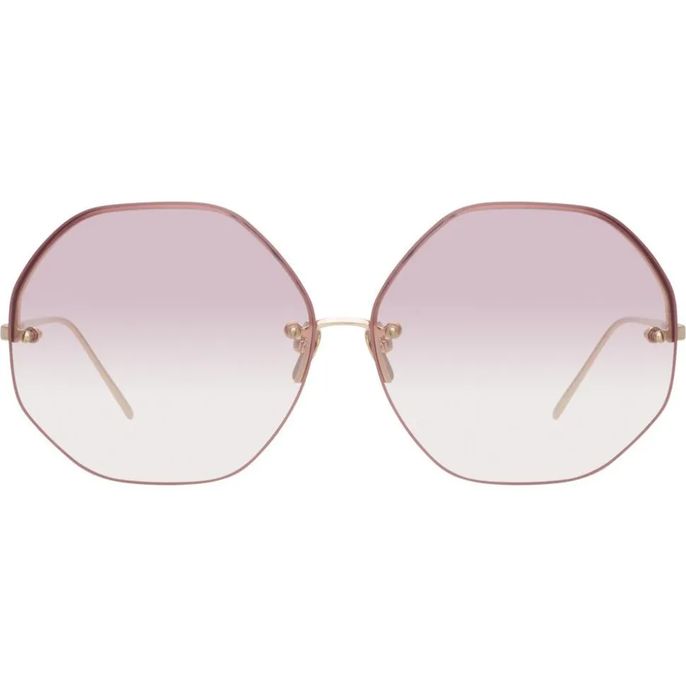 In an oversized angular silhouette, these luxurious Linda Farrow sunglasses celebrate the era of the good life captured by Slim Aarons. Handcrafted with 18-22 carat light gold-plated hypoallergenic titanium running along the top half of the back of the frame and into tapered temples, these statement sunglasses are contrasted with pink gradient nylon lenses.