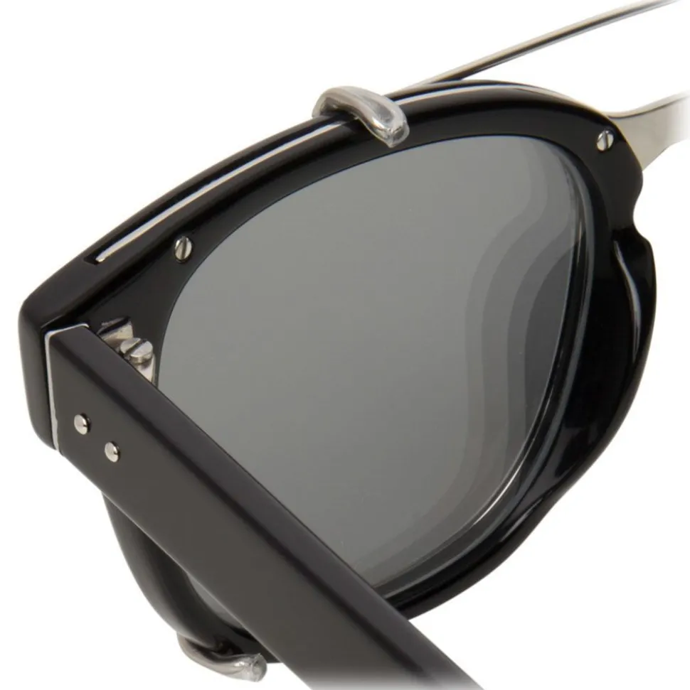 Unexpected details such as co-ordinating white gold plated titanium running atop the rim and keyhole cutout complete this versatile, statement style. Characteristic signature raised pin details, Japanese bulb tips and the Linda Farrow logo in signature white can be found in the inside of the temple. Comes with a pouch to store clip-on when not in use.