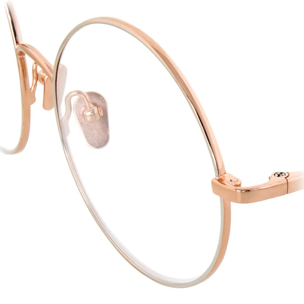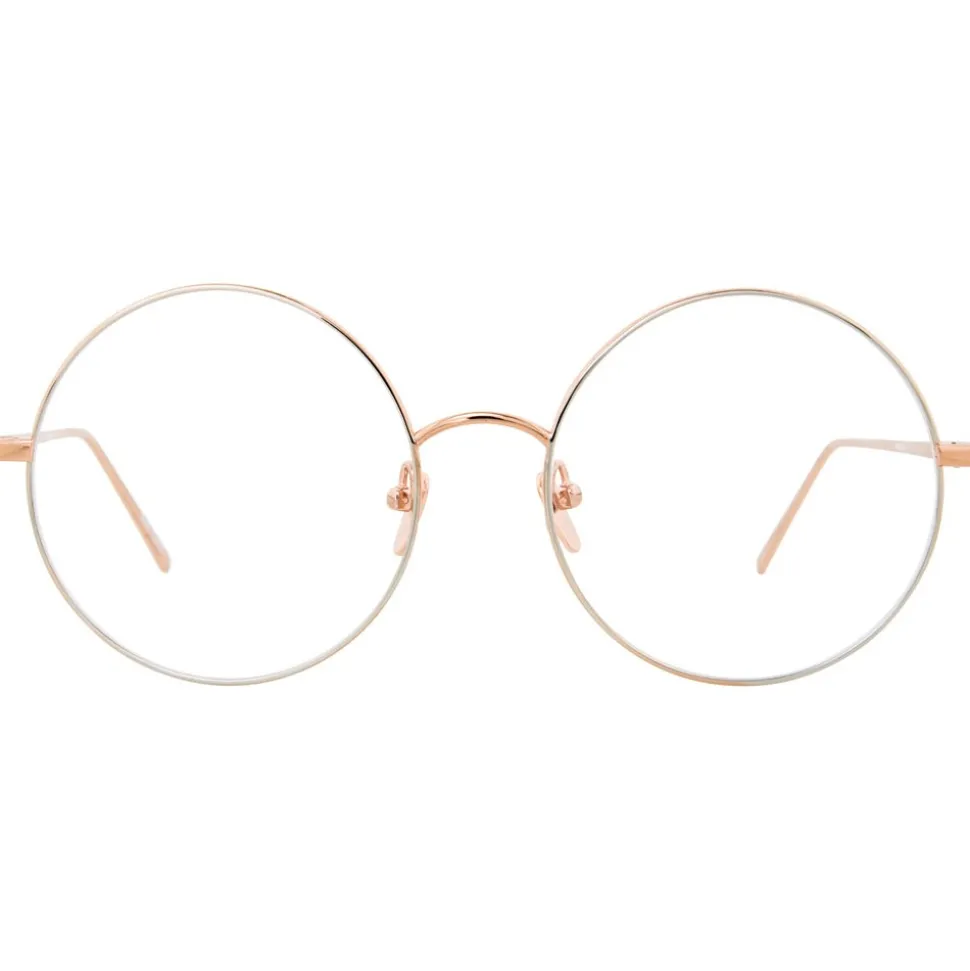 In a retro-inspired round silhouette, these luxurious Linda Farrow optical glasses are crafted by hand entirely from 18-22 carat rose gold-plated lightweight titanium. Contrasted with a 18 – 22 carat white gold-plated rim to the front, these imitable glasses are complete with tapered temples with Japanese bulb tips, adjustable nose pads and the Linda Farrow logo in signature white.
